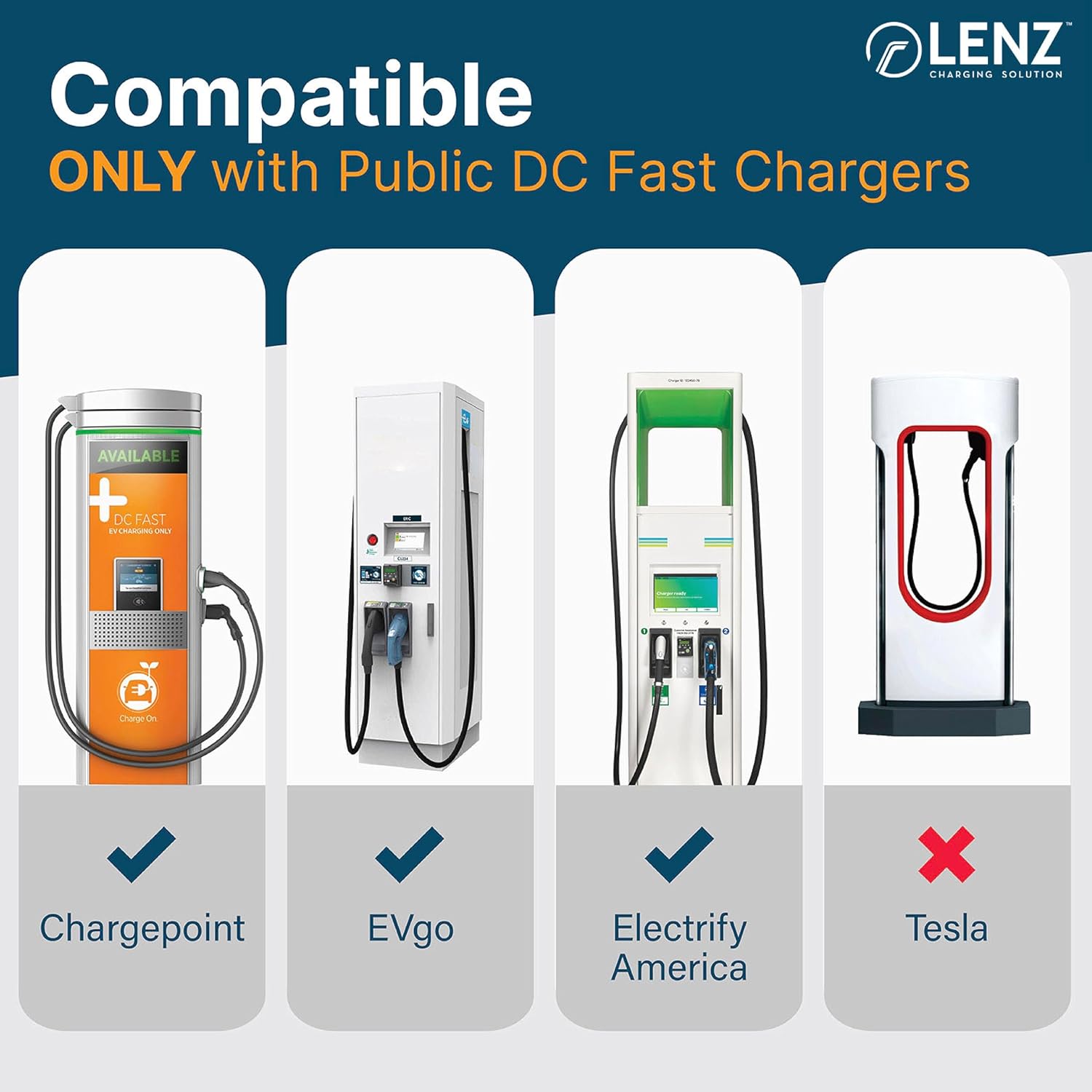 LENZ CCS1 to Tesla EV Charging Adapter – for 2021+ Tesla Models ONLY (Not for Cybertruck) – Connect to Public DC Level 3 Fast Chargers Up to 250 kW