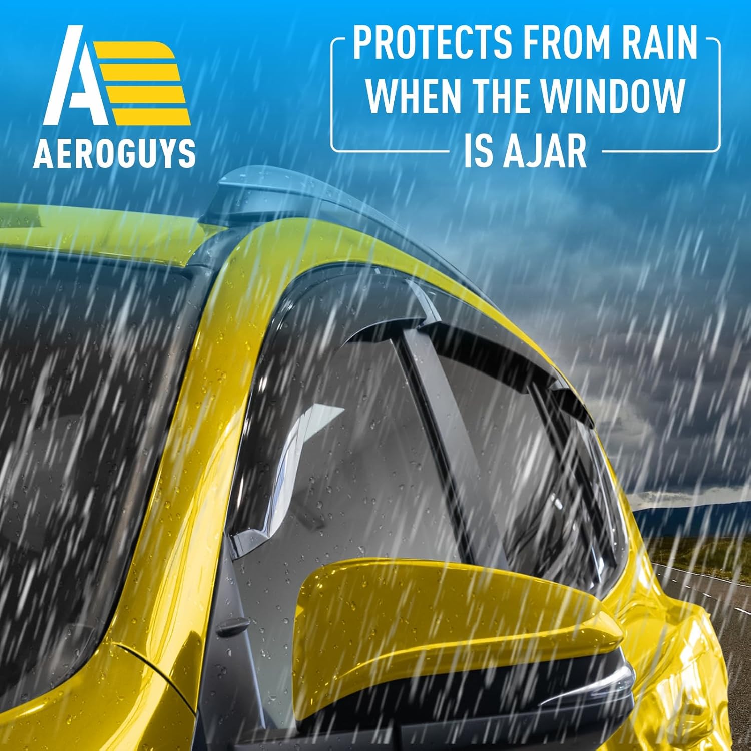 - Incredibly Durable AEROGUYS Auto Window Deflectors – They are made with strong and tough polycarbonate which is clear and scratch-resistant. They also provide UV protection making your ride more comfortable under all weather conditions.