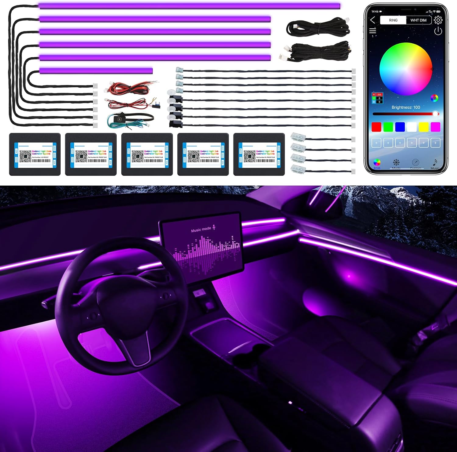 Acrylic Interior LED Strip Light With Wireless APP, RGB 18 in 1 With 175 Inches 600 LEDs Fiber Optic Ambient Lighting Kits for Car, 16 Million Colors Sound Active Function