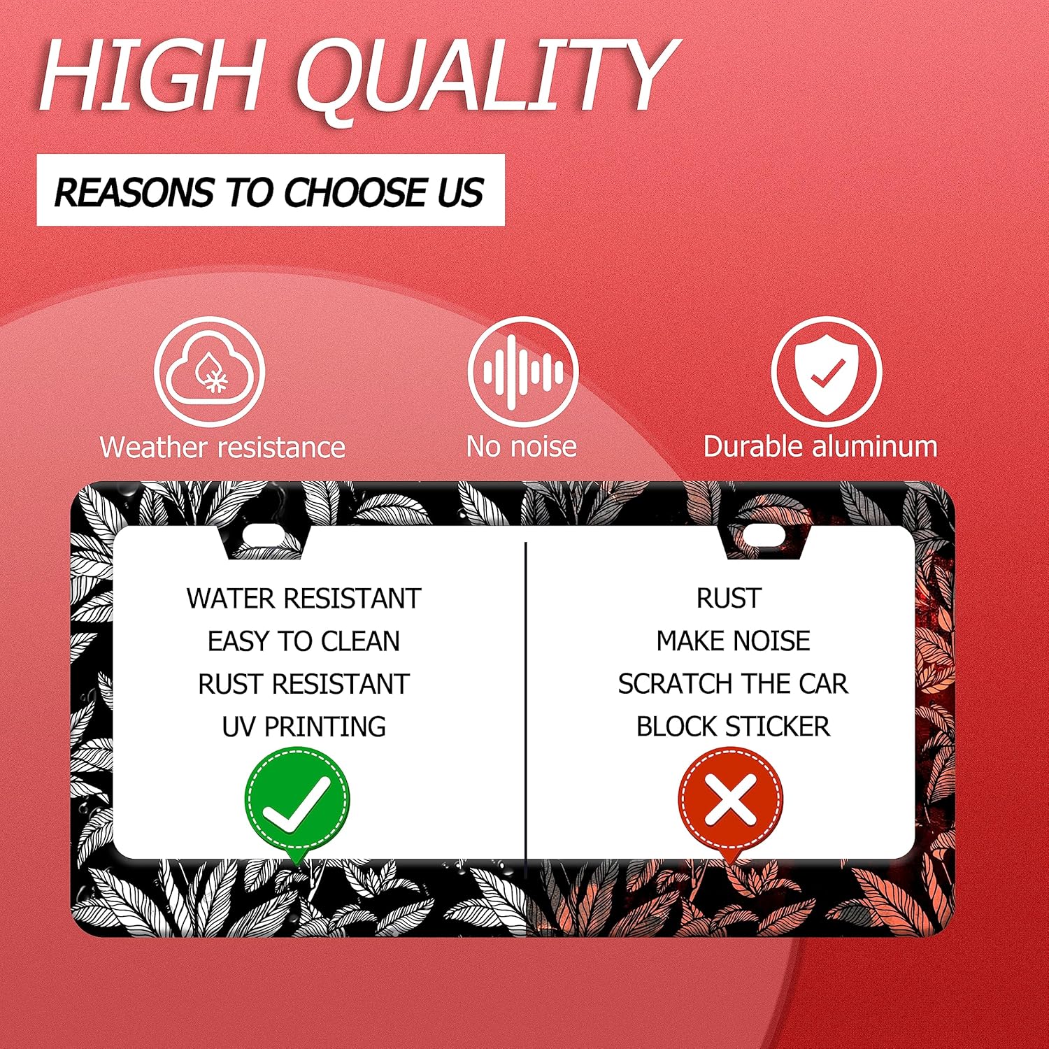 - Design:Use Advanced digital printing Protects license plate frames from Whether it's a car wash, heavy rain or hot weather, it still looks brand new,Let your car still be unique and stylish while driving on the road