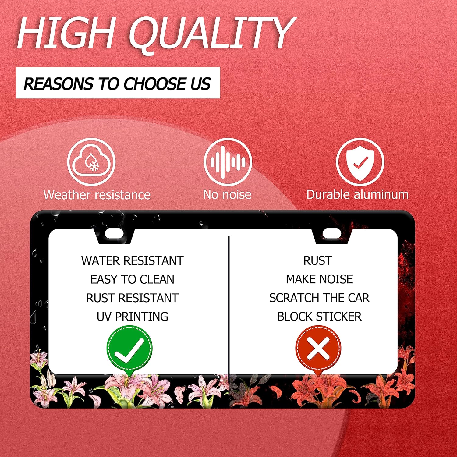 - Design:Use Advanced digital printing Protects license plate frames from Whether it's a car wash, heavy rain or hot weather, it still looks brand new,Let your car still be unique and stylish while driving on the road