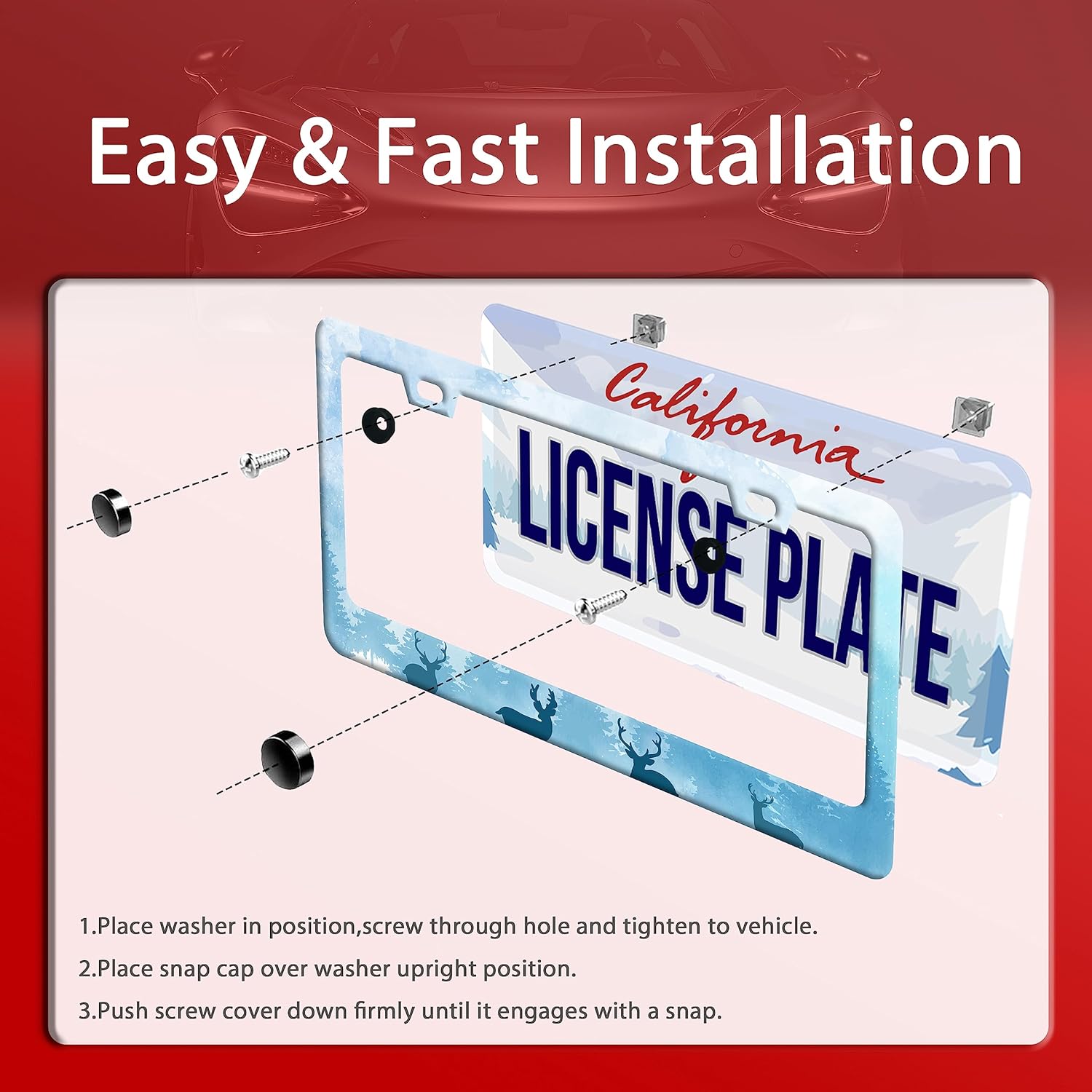 - Design:Use Advanced digital printing Protects license plate frames from Whether it's a car wash, heavy rain or hot weather, it still looks brand new,Let your car still be unique and stylish while driving on the road