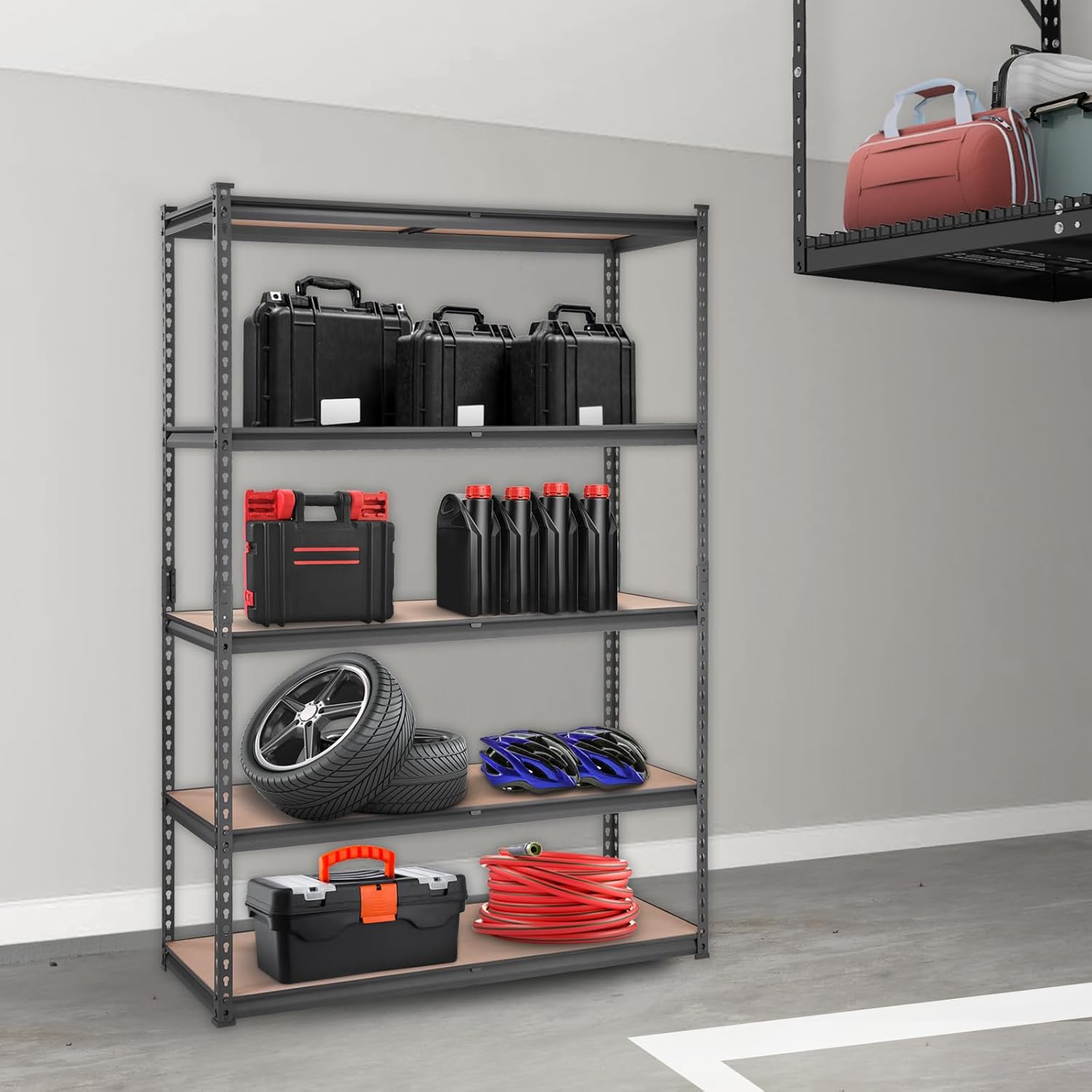 - Load Up Your Life: Transform your cluttered garage into a neat and organized space with our storage shelving unit. With a 2000 lbs total load capacity, you're free to pile on tools, supplies, or whatever you need in your garage or warehouse. Remember, each shelf is a sturdy 400 lbs carrying companion!