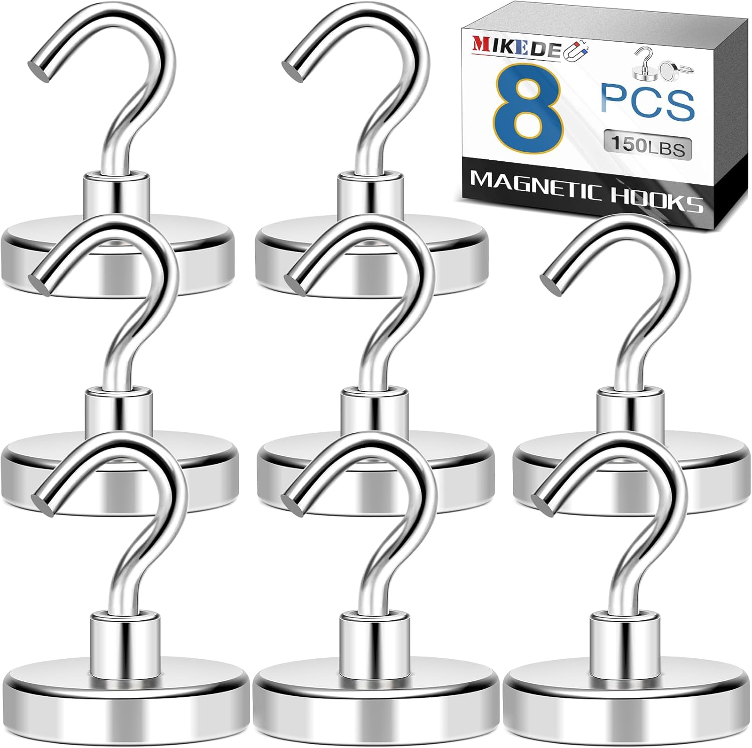 MIKEDE Magnetic Hooks Heavy Duty, 150LB+ Strong Neodymium Magnets for Refrigerator, Large Magnetic Hooks for Hanging, Magnets with Hooks Cruise Ship Essentials for Kitchen, Workplace - 8 Pack