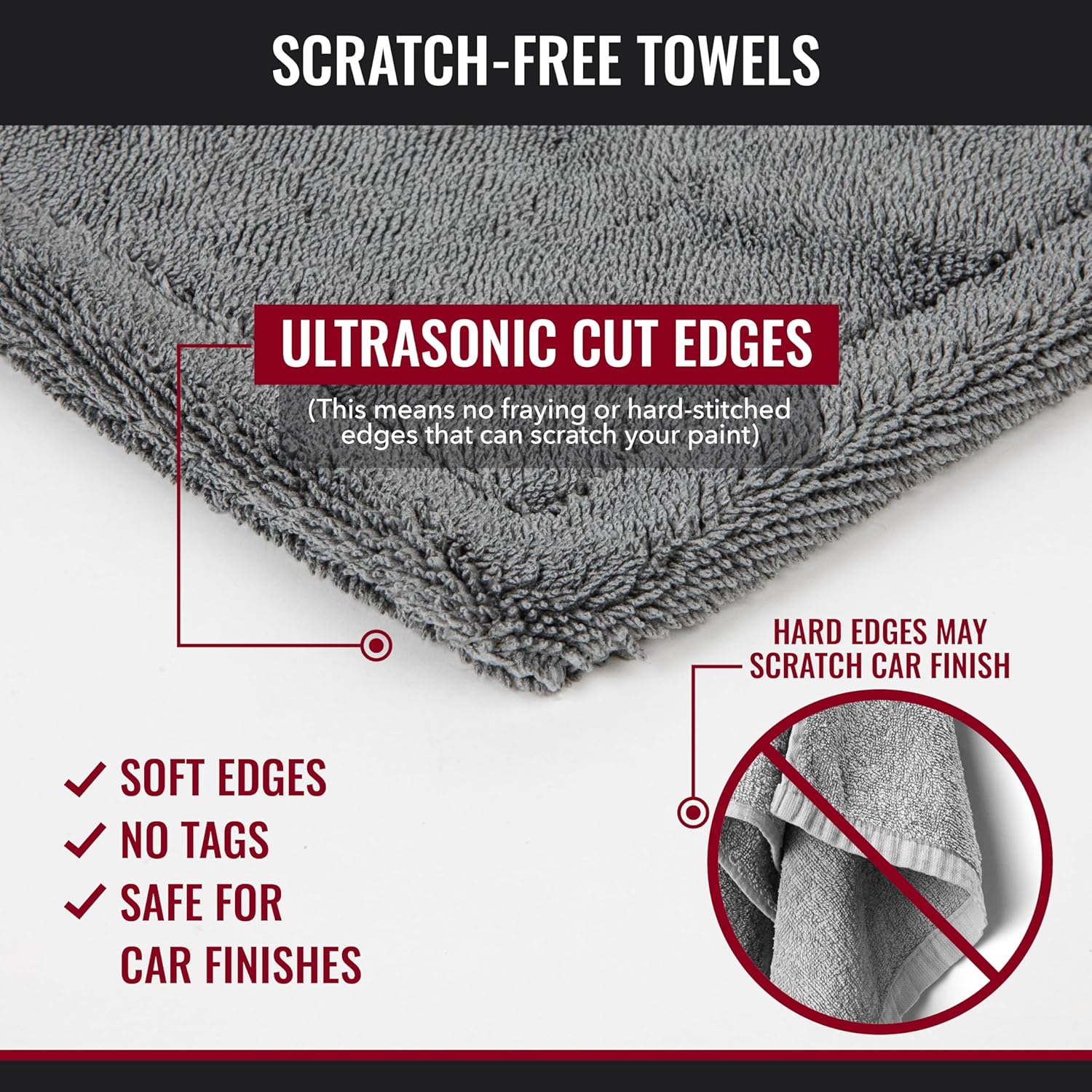 - HIDDEN EDGE: This microfiber cleaning cloth features a hidden edge, ensuring that no scratches are left on your beautiful finish. Invest in a premium drying towel that goes beyond traditional cleaning cloths that leave behind residue and scratches.