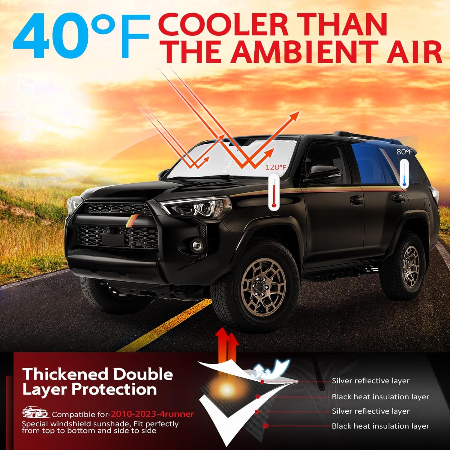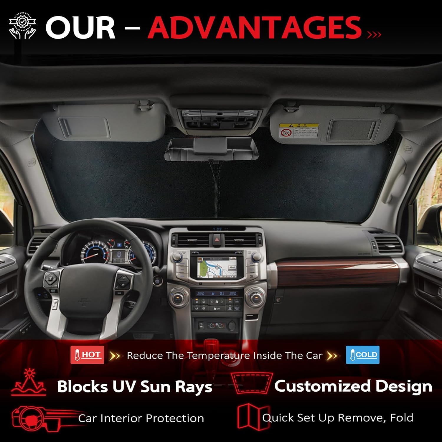 - KAYZT windshield sun shade is precise custom fit for 2010 2011 2012 2013 2014 2015 2016 2017 2018 2019 2020 2021 2022 2023 2024 Toyota 4Runner, Thoroughly covers every corner of the windshield, Tailored to accommodate rear view mirror, Ensuring a seamless and snug fit without obstruction, Must have car accessories for Toyota 4Runner