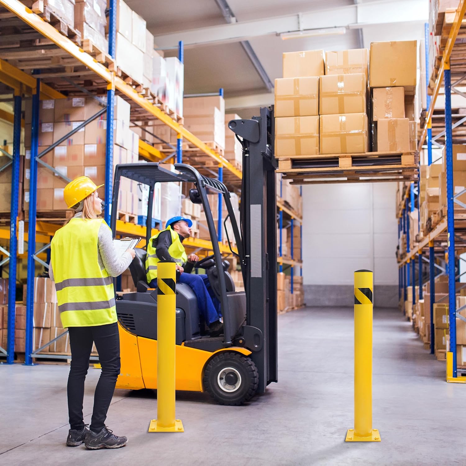 - [Enhanced Visibility]: Powder-coated bright yellow finish; Tops of our bollards are wrapped in 3in (7.6cm) black and yellow Department of Transportation compliant reflective tape for nighttime visibility