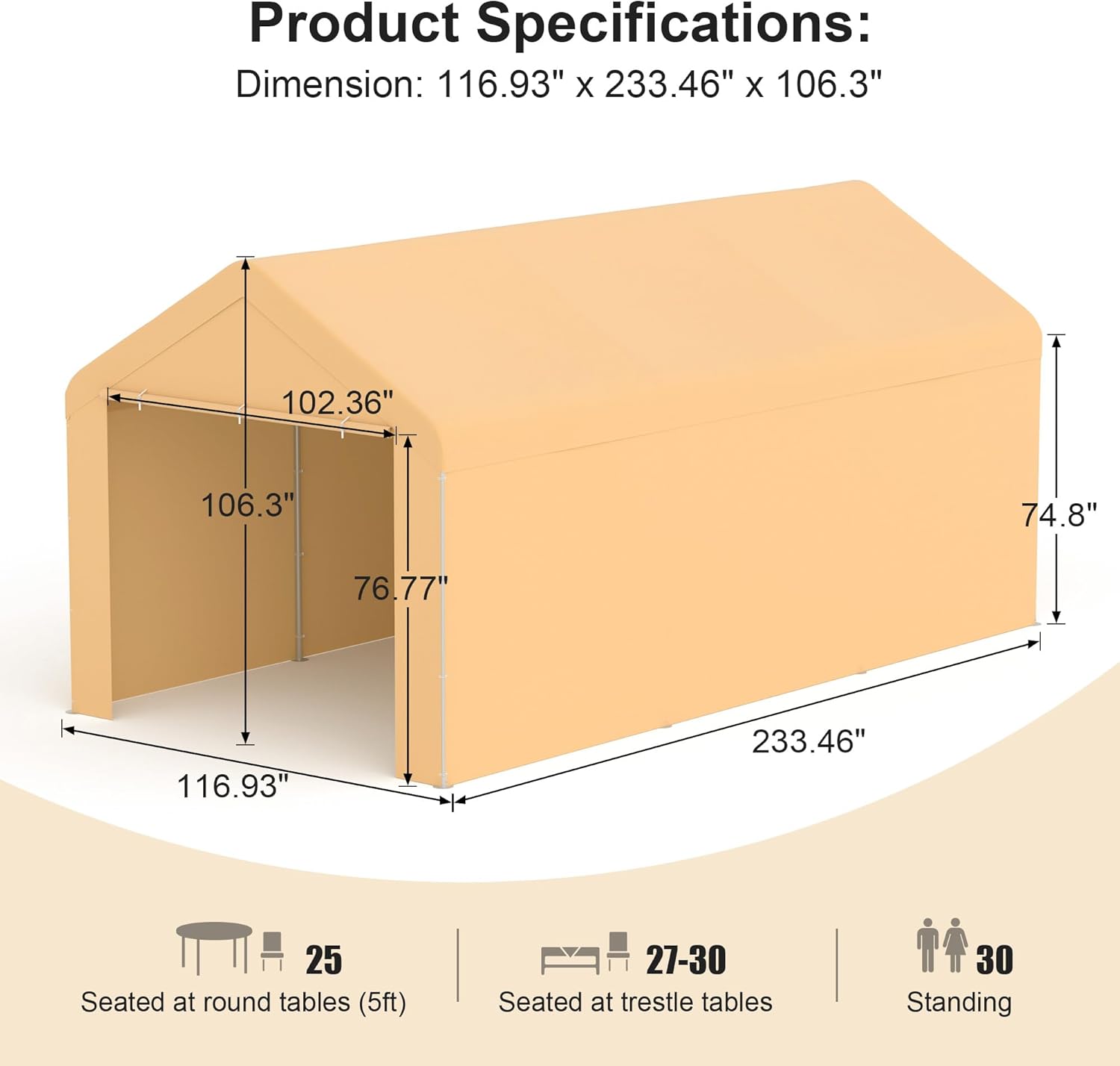 - 【Reinforcement Structure】Heavy-duty, rust & corrosion resistant Galvanized tube steel framework with 8 legs offer more stablity, the height of the 10x20 carpot sides is 74.8" and the peak height is 102.36".