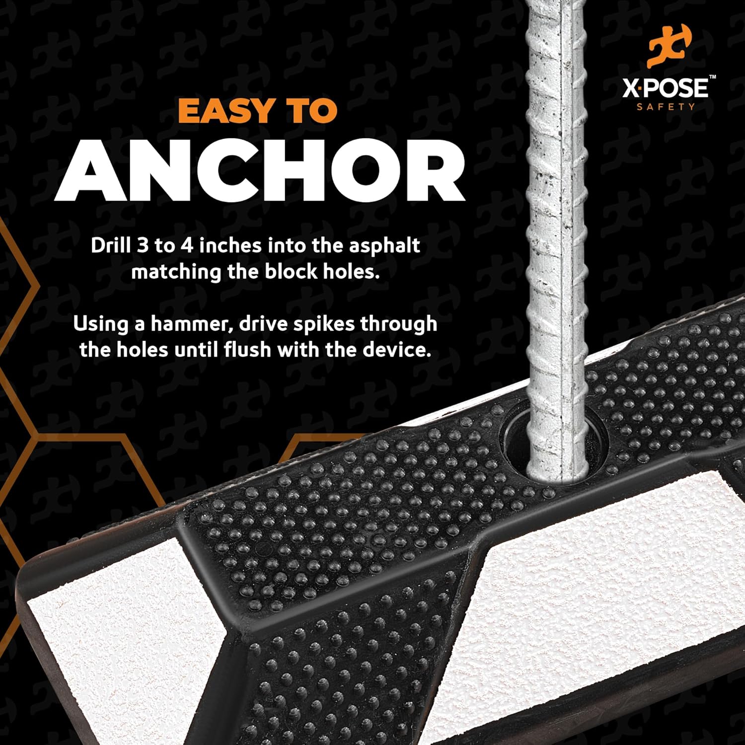 Xpose Safety 72" Heavy Duty Rubber Parking Stopper – 6 Pack Wheel Blocks for Garage, Driveway, or Ramp – Car Bumper Stop with White Reflective Strips – Removable Floor Mount