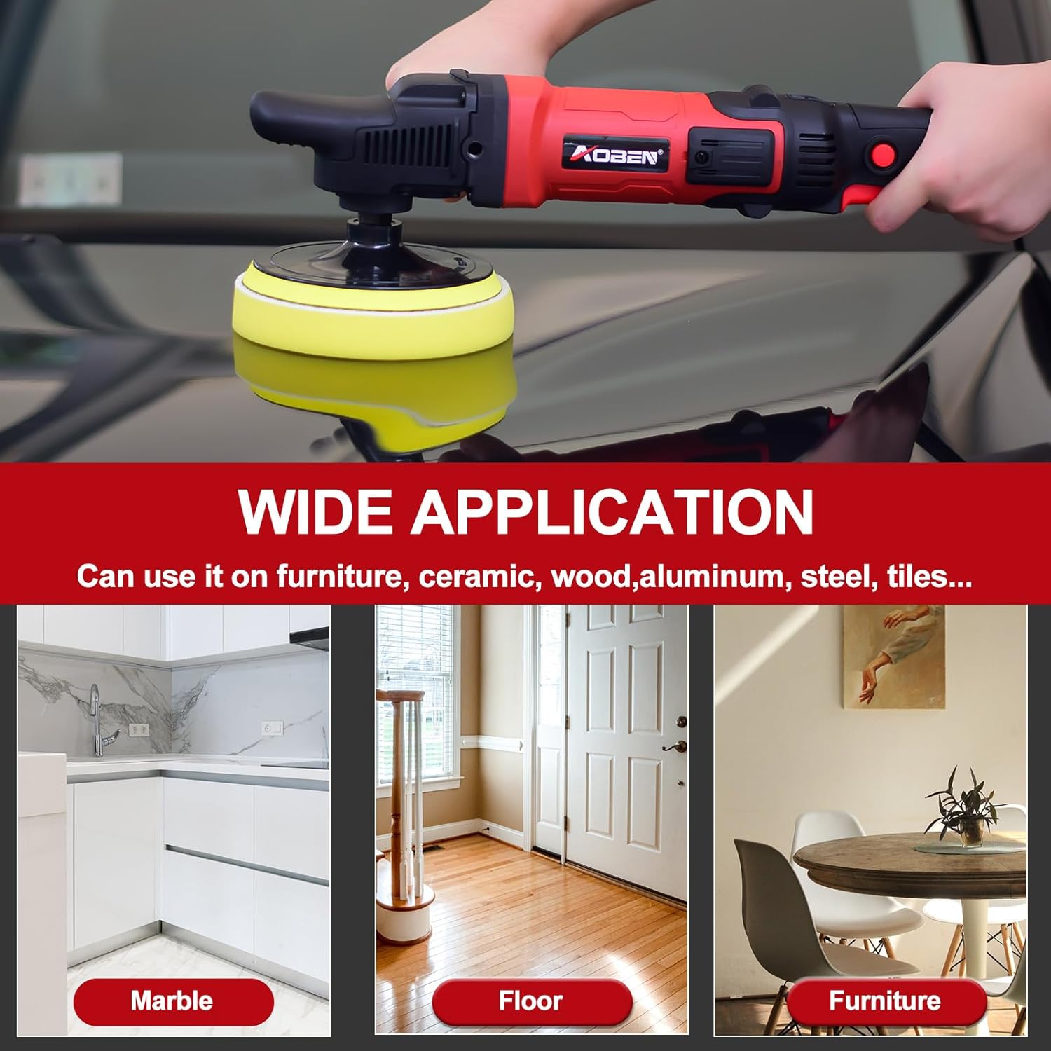- 🚗【POWERFUL Motor】120V,6/7-Inch polisher;Powerful 1600W motor produces up to 3500RPM,powerful enough for a professional.for Car Sanding, Polishing, Waxing, Sealing Glaze,Low speed for waxing and buffing; Medium speed for polishing and cleaning while high speed for removing paint defects and oxidation.