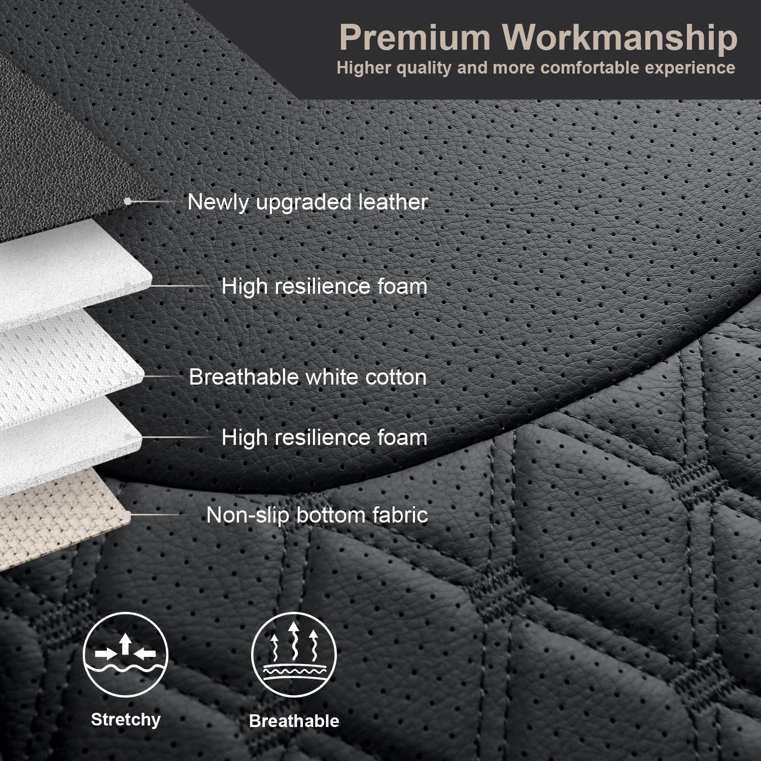 - 【QUILTED DESIGN】 - Front seat cover show rich in stereoscopic vision with a diamond-shaped quilted design and stitching decoration, simple and stylish, and it can be perfectly integrated with your car interior.
