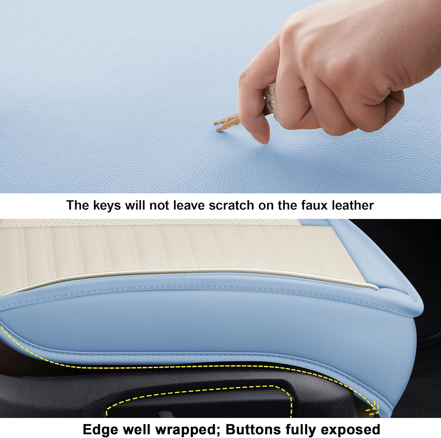 LINGVIDO Universal Car Seat Cover, Breathable and Waterproof Faux Leather Automotive Seat Covers for Cars SUV Sedan (Front seat, White & Light Blue)