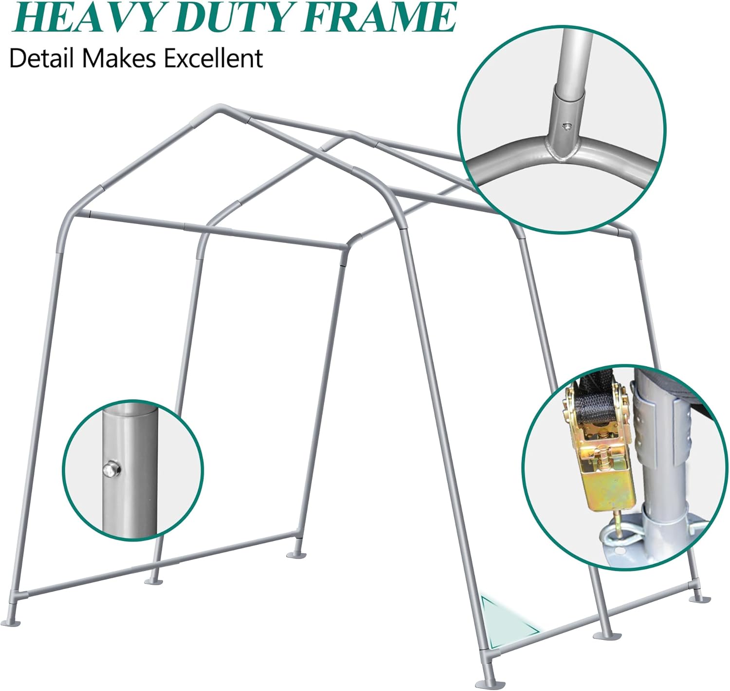 - đź§°MULTIPLE USAGE: The Heavy Duty Storage Tent can be used as Bike sheds, Tool sheds, Motorcycle Shelter or Storage room for your backyard, garden, pool. It can keep your space environment neat and tidy
