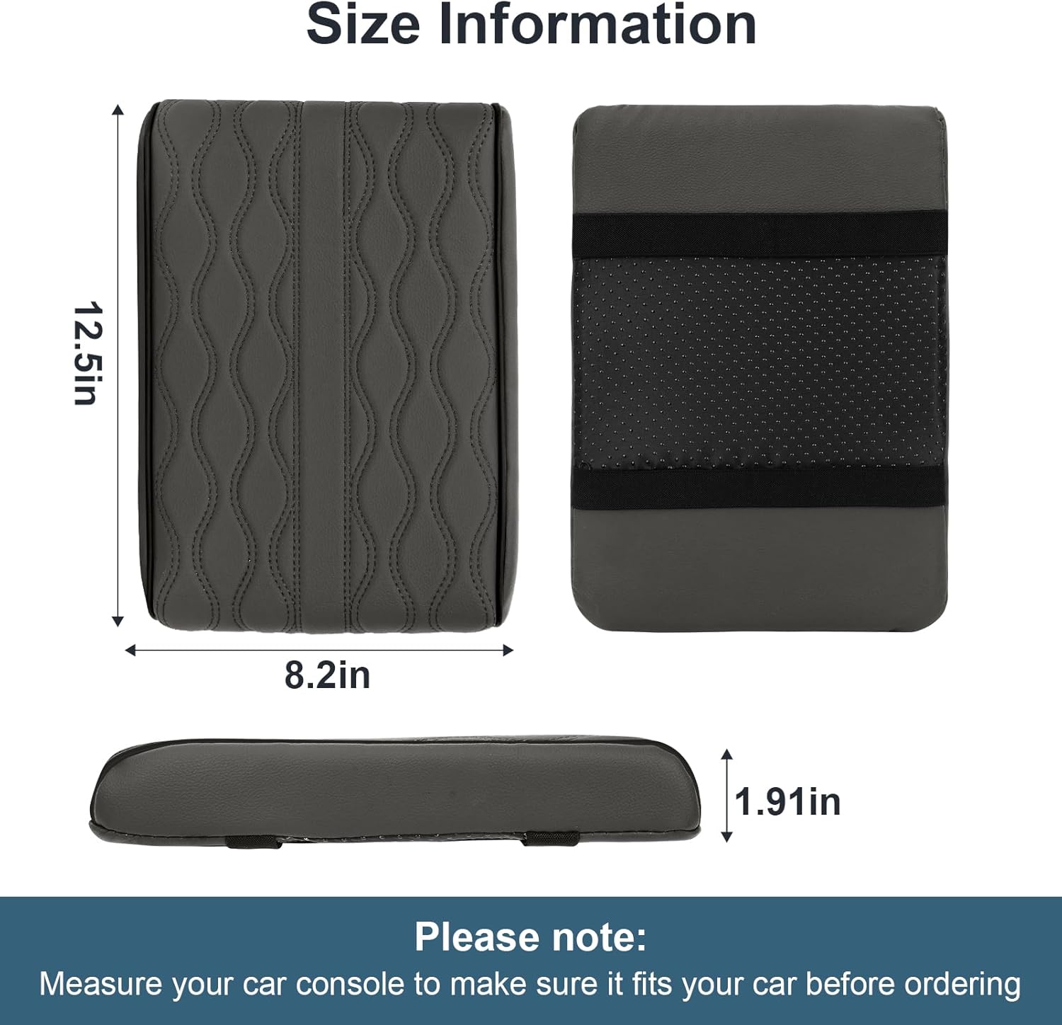 - Universal Fit for Most Vehicles: 12.5*8.2*1.9inches, please measure your center console size before purchasing. This universal armrest cushion is designed to fit cars & sedans & vehicle & SUV. Anti-slip and snug fit ensures it won't slip or interfere with the opening and closing of your console