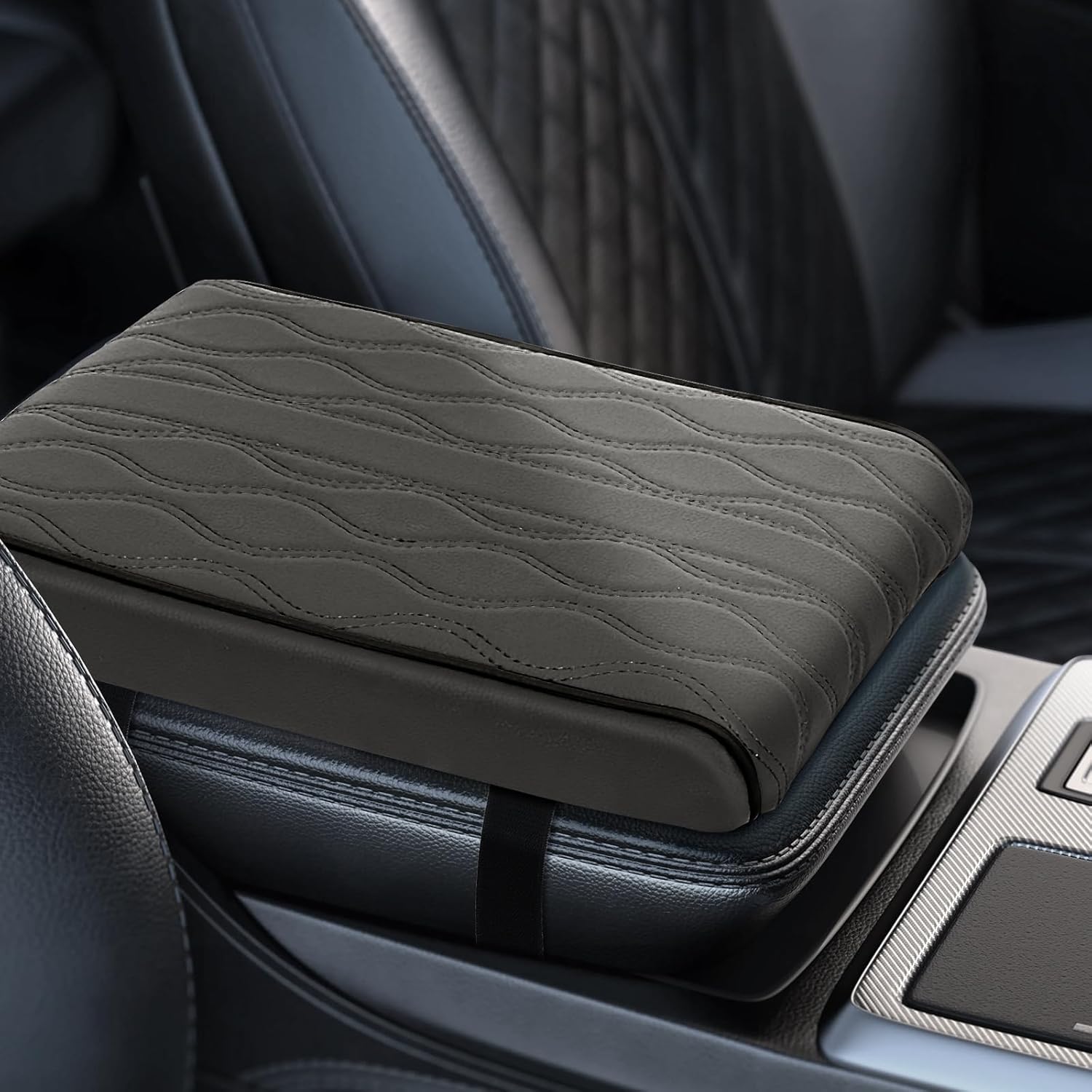 Memory Foam Car Armrest Cushion - Premium Leather Armrest Cover for Car, Comfortable Protection, Universal Fit Center Console Cover for Car, SUV, Sedan, Easy Installation (Gray)