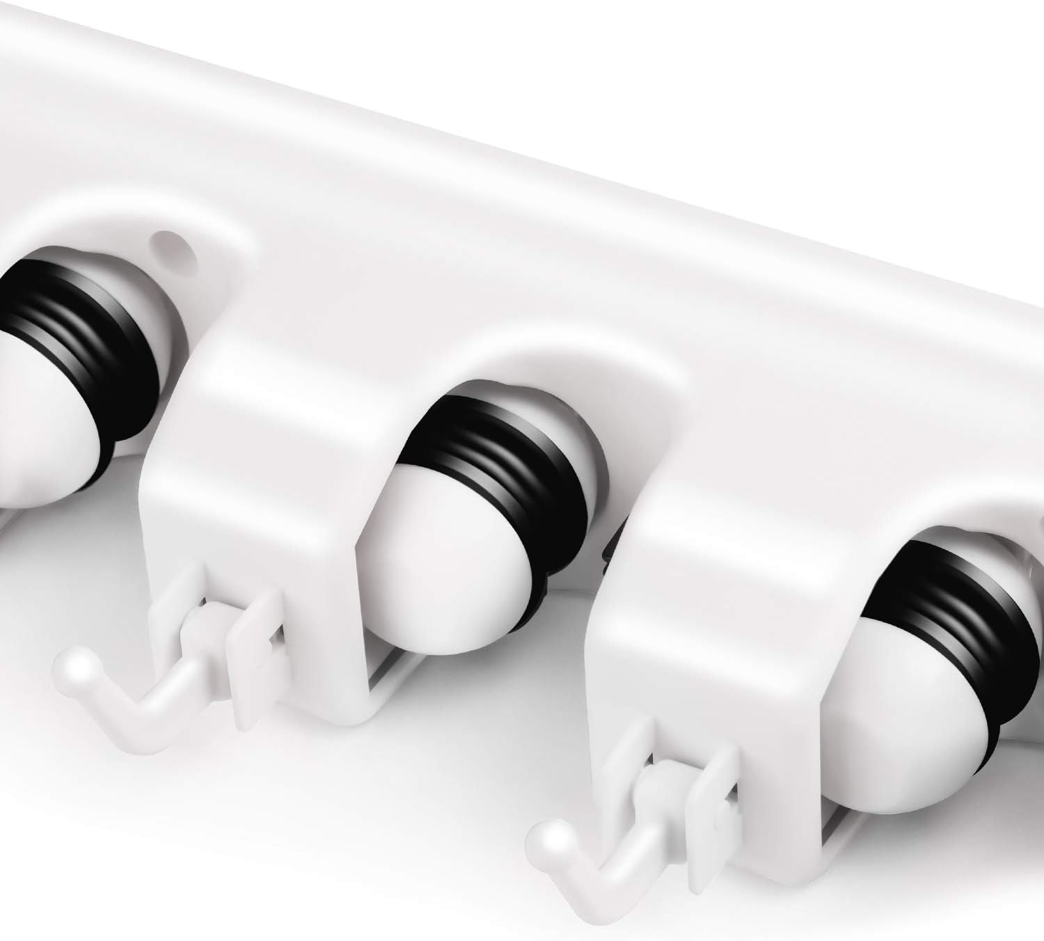LETMY Broom Holder Wall Mount - Mop and Broom Hanger Holder - Garage Storage Rack & Garden Tool Organizer - 5 Position 6 Hooks Broom Rack for Home, kitchen, Garden, Tools, Garage Organization - White
