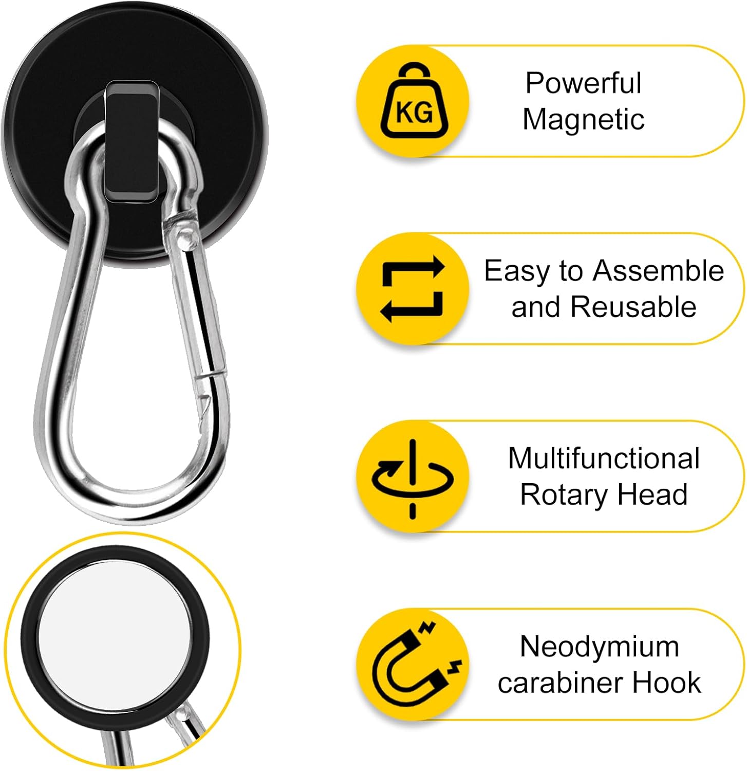 DIYMAG Magnetic Hooks, 70LBS Heavy Duty Neodymium Magnetics with Swivel Carabiner Hook,Great for Your Refrigerator and Other Magnetism Surfaces, Pack of 6
