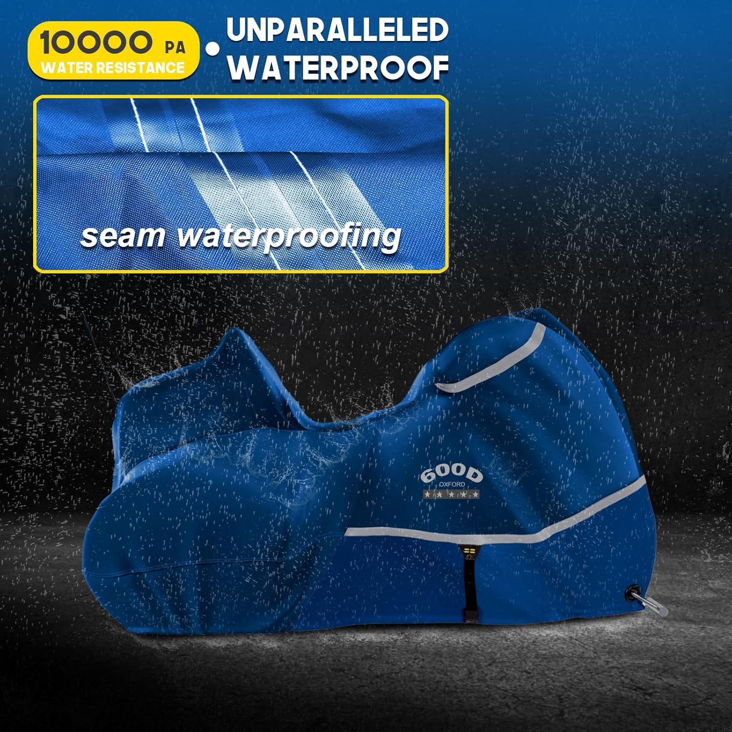 - 【100% 600D Oxford cloth】: The motorcycle cover, weighing 6.8lb, is almost thicker and solider than those on the market. The fabric is resistant to aging and ripping, and UV proof, dustproof and rainproof.