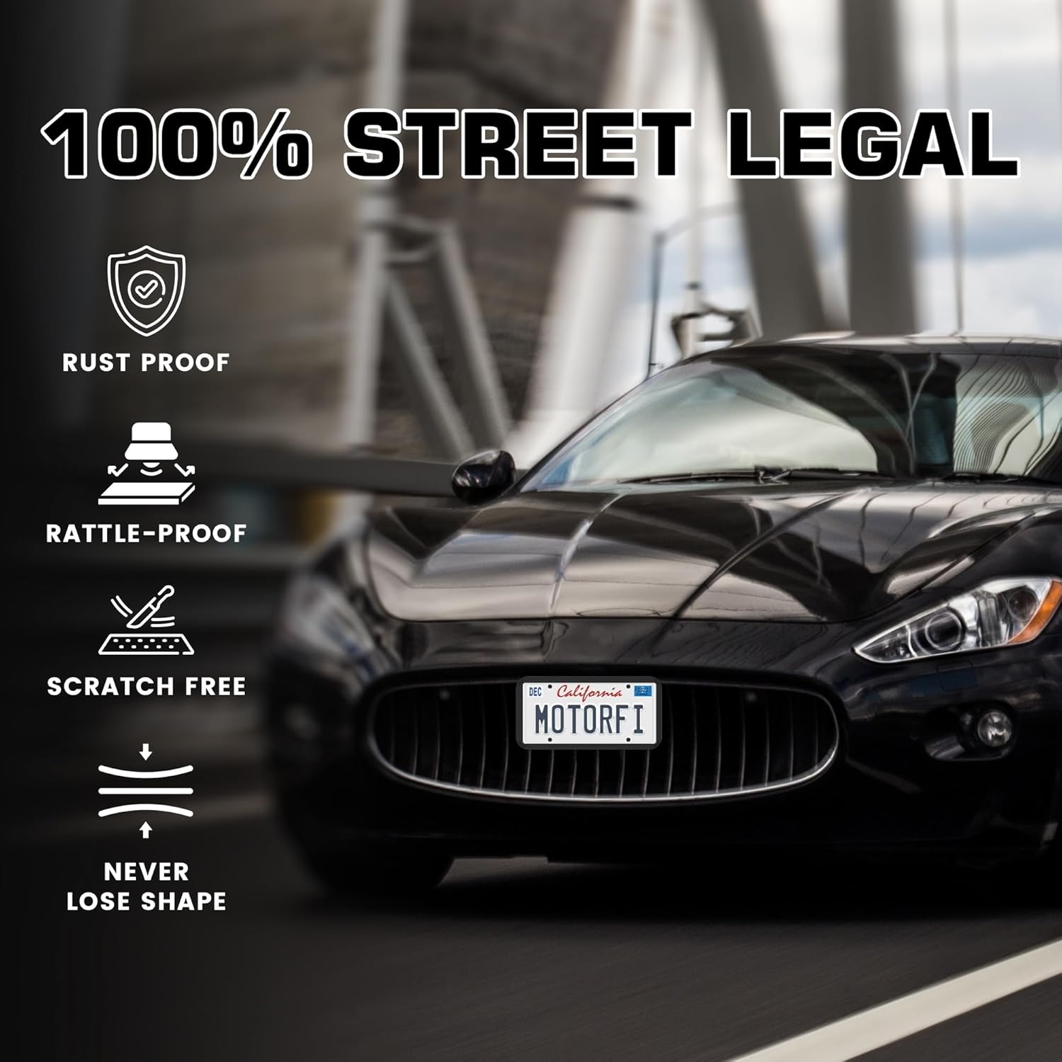 - ULTRA DURABLE: MotorFi Black License Plate Frames are made from high-quality silicone material, ensuring these heavy duty license plate frames for men are rust, rattle, and weather-proof. These license plate covers and license plate holders can withstand various environmental conditions