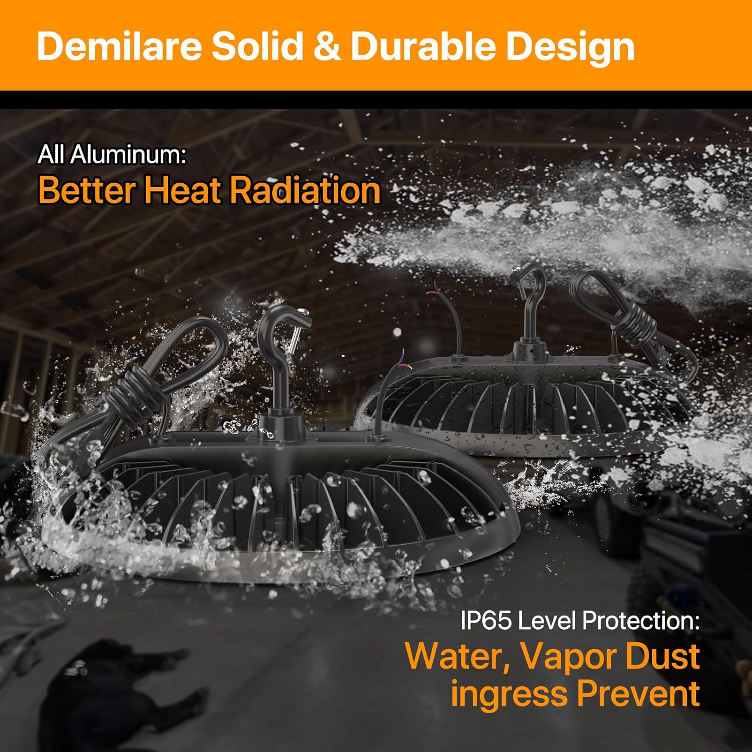 - High Brightness Output: The DEMILARE 200W High Bay LED Shop Lights deliver an impressive 30,000 lumens of bright daylight white light (5000K), ensuring your workspace is brilliantly illuminated for all tasks, making them the ideal choice for any environment needing high bay lights.