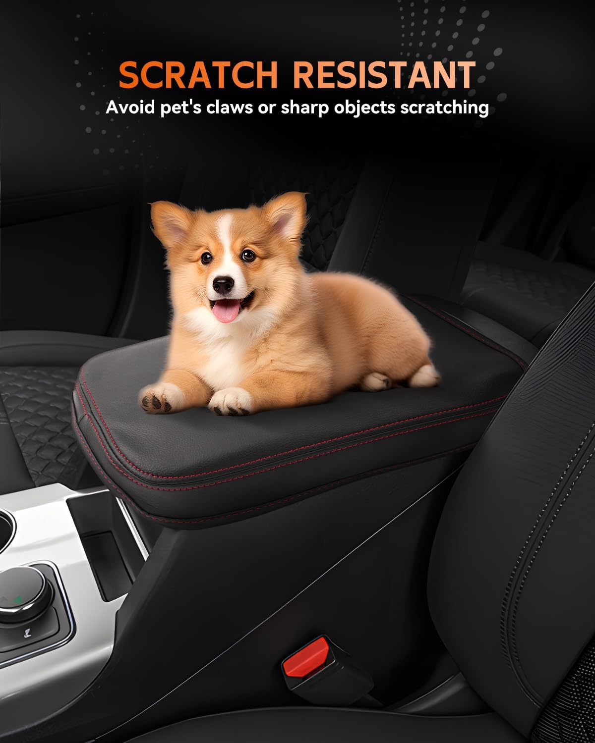 - [Excellent Scratch Resistance] The car Armrest Cover mat is made of high quality PU microfiber leather, thick enough to keep out pet paws, dust and sticky fingers. The surface is waterproof, wear-resistant and durable, breathable, light weight and easy to wipe clean of dirt.