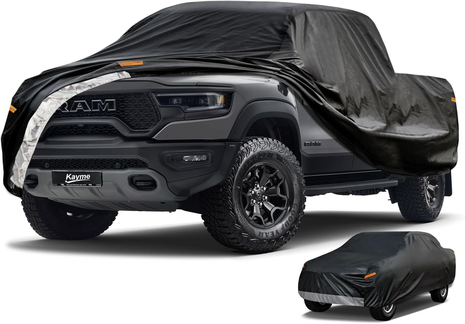 Kayme 7 Layers Truck Cover Waterproof All Weather, Heavy Duty Outdoor Pickup Cover Sun Uv Rain Protection, Universal Fit Dodge Ram 1500, Chevy Silverado, Ford F150 (Length Up to 242 inch) XL/Black