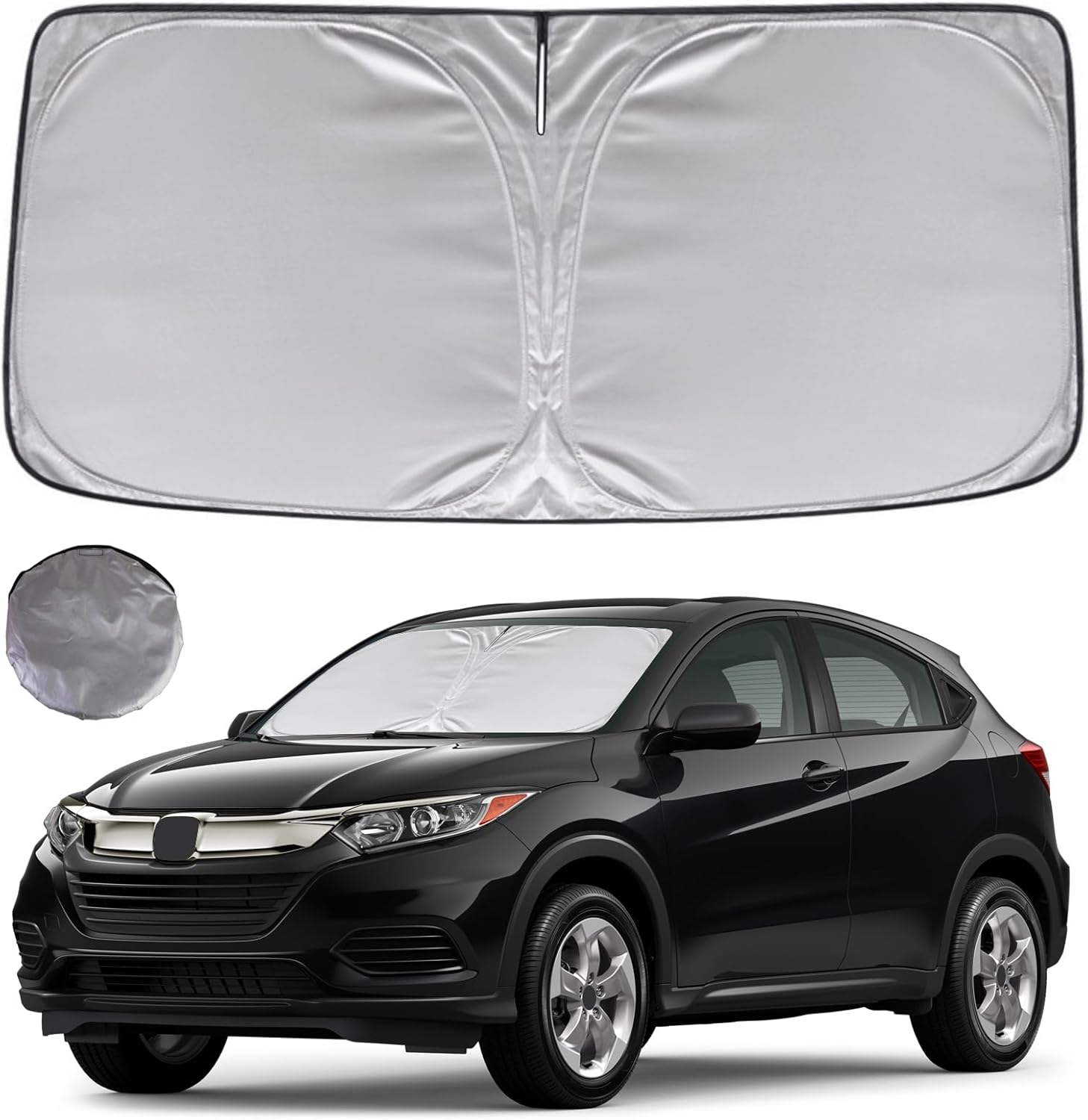 - KAYZT windshield sun shade is precise custom fit for 2016 2017 2018 2019 2020 2021 2022 Honda HRV, Thoroughly covers every corner of the windshield, Tailored to accommodate rear view mirror, Ensuring a seamless and snug fit without obstruction, Must have car accessories for HR-V