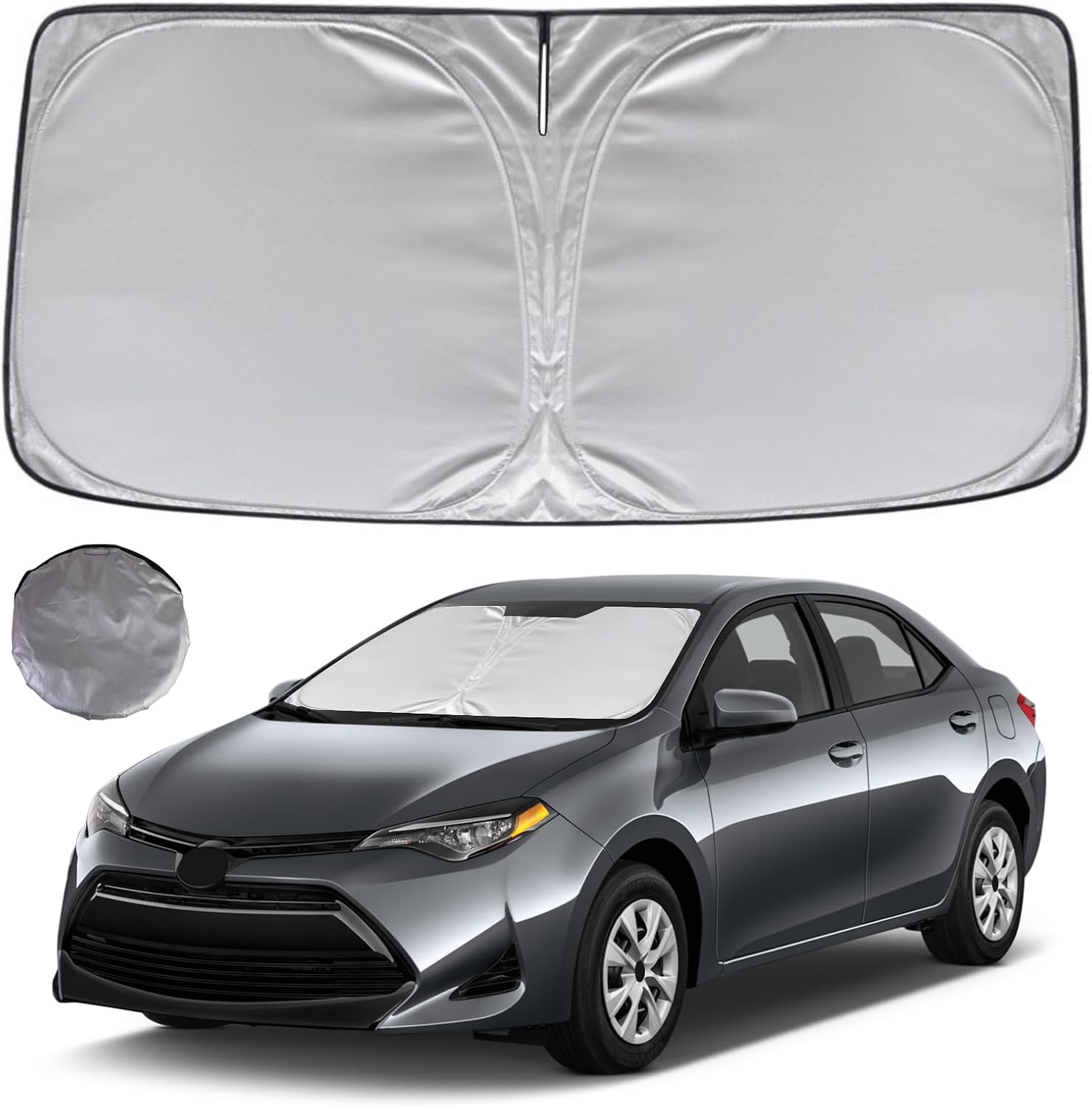 - KAYZT windshield sun shade is precise custom fit for 2014 2015 2016 2017 2018 2019 Toyota Corolla, Thoroughly covers every corner of the windshield, Tailored to accommodate rear view mirror, Ensuring a seamless and snug fit without obstruction, Must have car accessories for Corolla