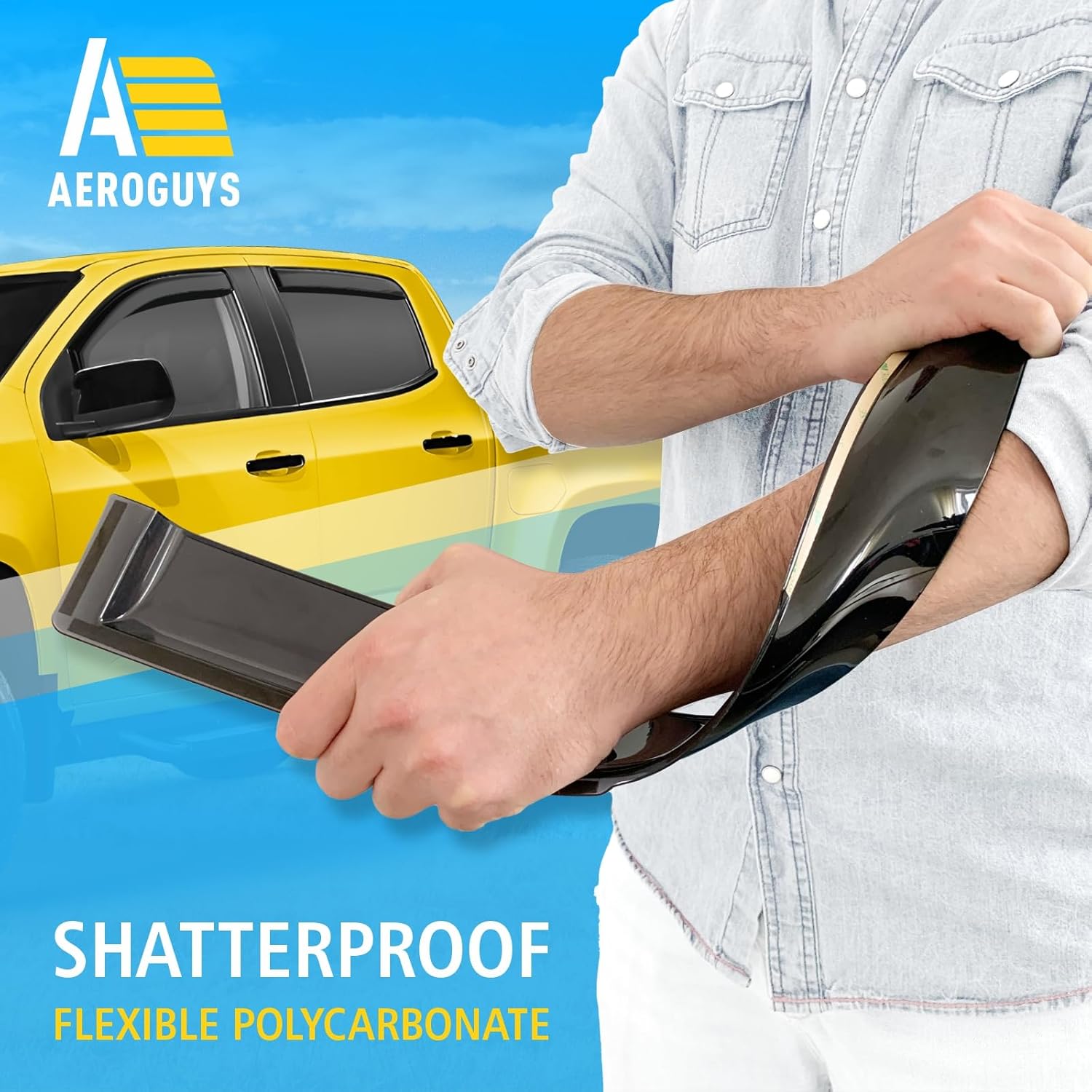 - Incredibly Durable AEROGUYS Auto Window Deflectors – They are made with strong and tough polycarbonate which is clear and scratch-resistant. They also provide UV protection making your ride more comfortable under all weather conditions.