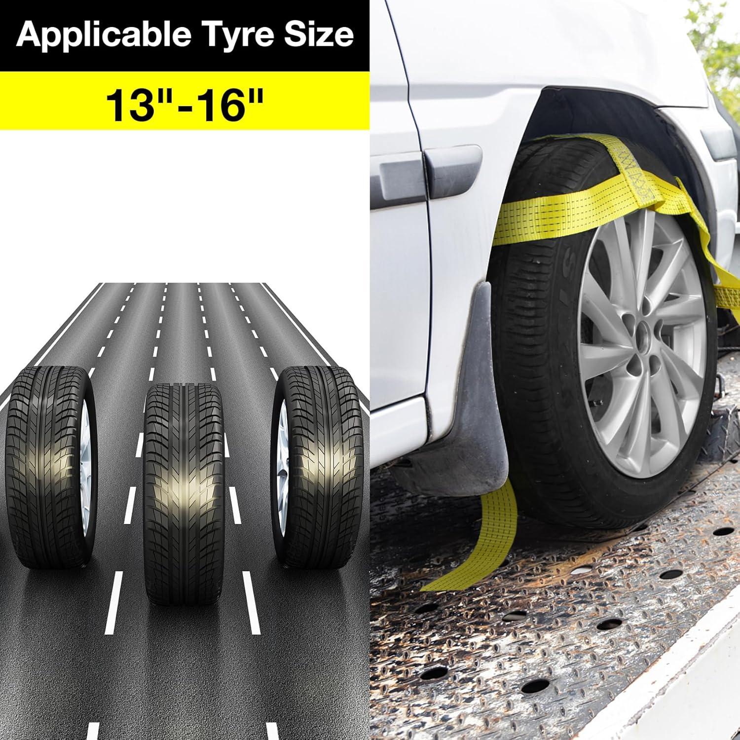 Tow Dolly Basket Straps with Flat Hooks Fits 14" 15" 16" Car Auto Hauler Wheel for A Car Trailer,SUV,UTV,ATV Transport Vehicle Tire Tie Down Strap Kit Heavy Duty Tire Bonnet Net Safe