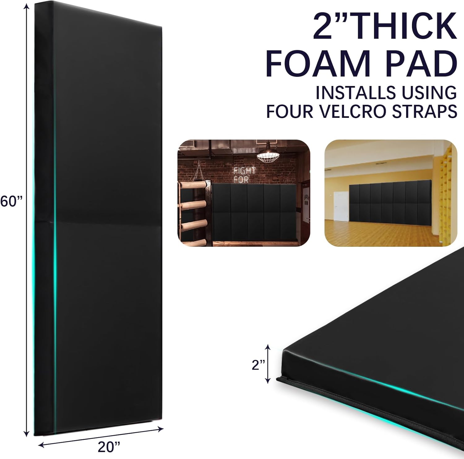 - đŻăExtensive coverage and valueă : Each package includes one smooth black sports protective wall pads, providing a total coverage area of 8.33 square feet. With pad sizes of 60"x 20"x 2" they can accommodate various wall sizes, ensuring comprehensive protection.