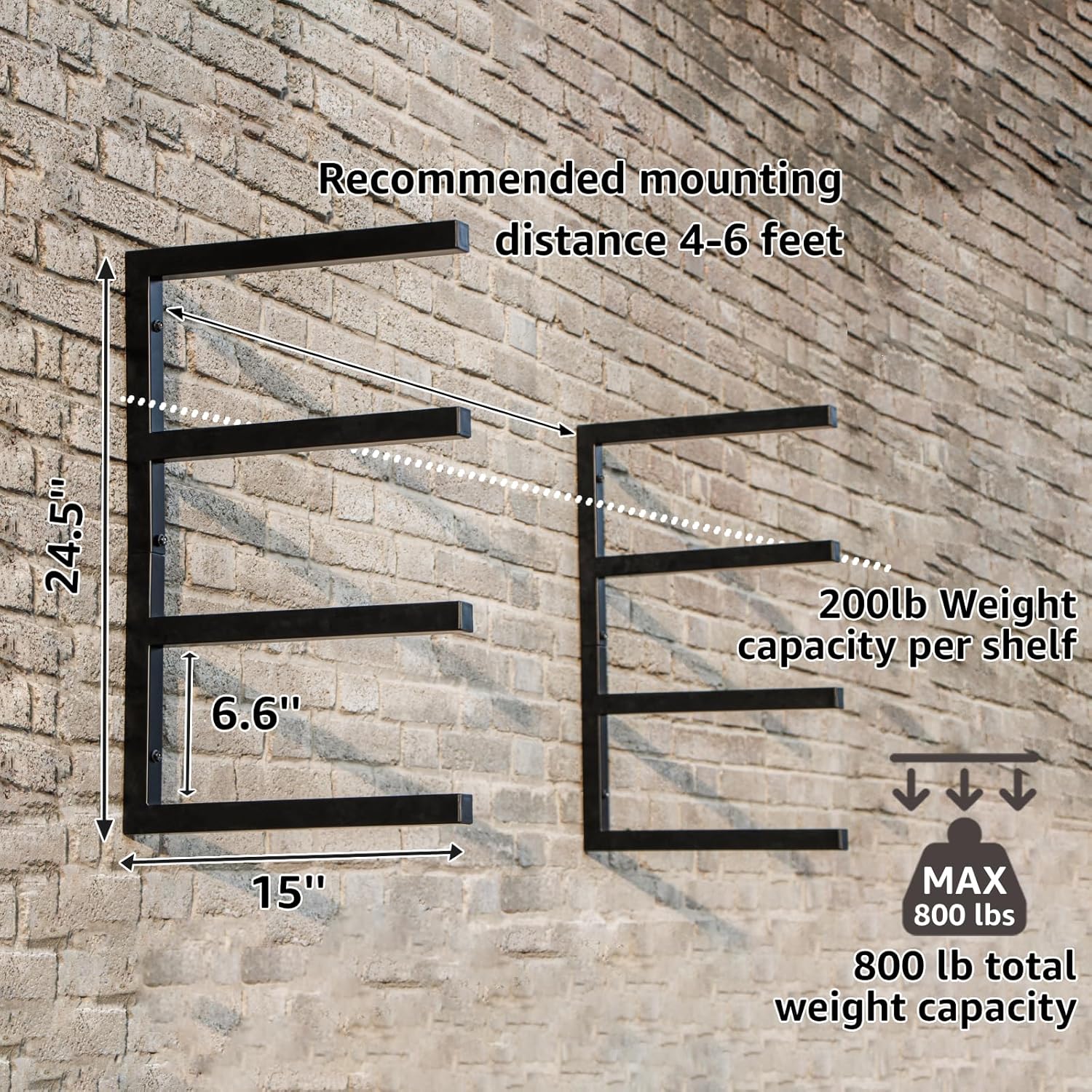 - 【Weight Capacity of 800 LBS】Our lumber rack wall mounted is made of powder-coated 1⅙” (3 cm) steel tube construction。After many tests, each shelf can hold up to 200 lbs, which means a total weight capacity of 800 lbs.