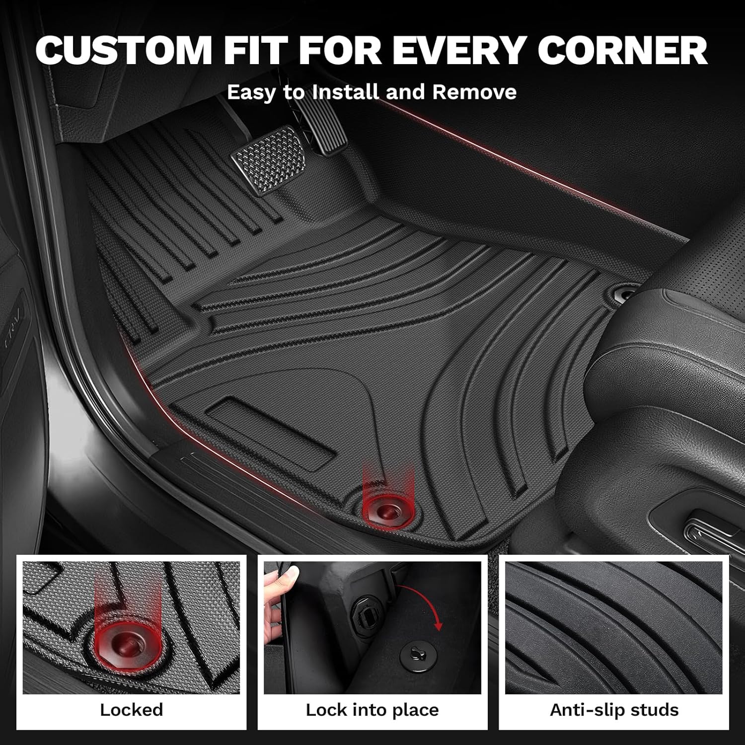- Upgraded TPE Material: Crafted from superior TPE, these floor liners offer unparalleled flexibility, soft touch, and durability, and are heavy-duty, odorless, and easy to reshape.