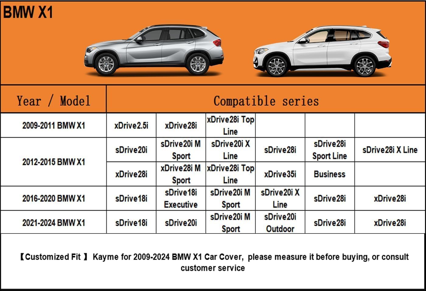 - 【Suitable for】— Custom fit for BMW X1 (2009-2025). Come with a large enough portable bag to store your cover when you do not use