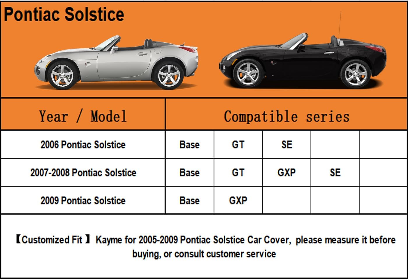 - 【Suitable for】— Custom fit for Pontiac Solstice (2005-2009). Come with a large enough portable bag to store your cover when you do not use