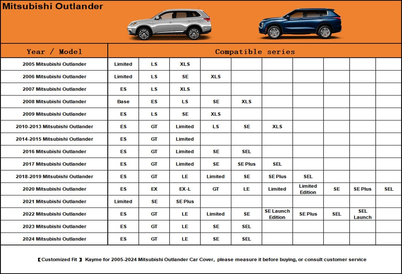 - 【Suitable for】— Custom fit for Mitsubishi Outlander (2005-2025). Come with a large enough portable bag to store your cover when you do not use