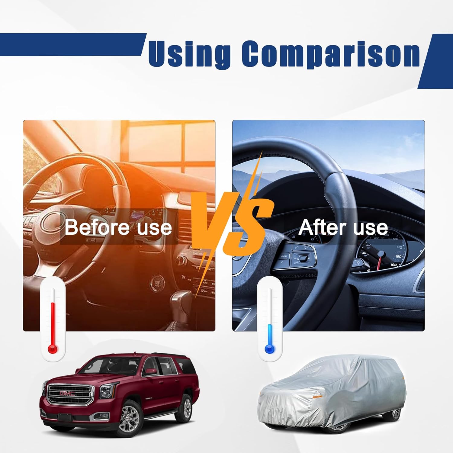 Kayme 6 Layers SUV Car Cover Custom Fit for GMC Yukon (1995-2025) Waterproof All Weather for Automobiles, Outdoor Full Cover Rain Sun UV Protection.Silver