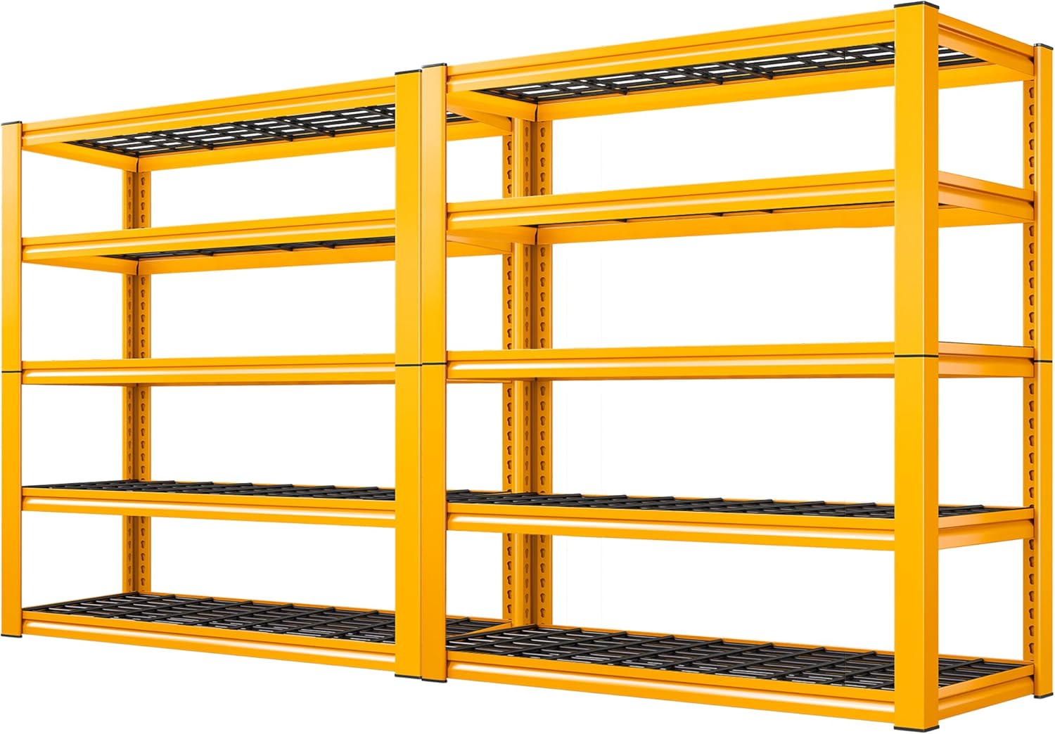 REIBII Garage Shelving Load 3000LBS, 5-Tier Storage Shelves, Adjustable Heavy Duty Metal Shelving Unit for Pantry, Basement, Warehouse, 72" H x 36" W x 16" D, 2PC