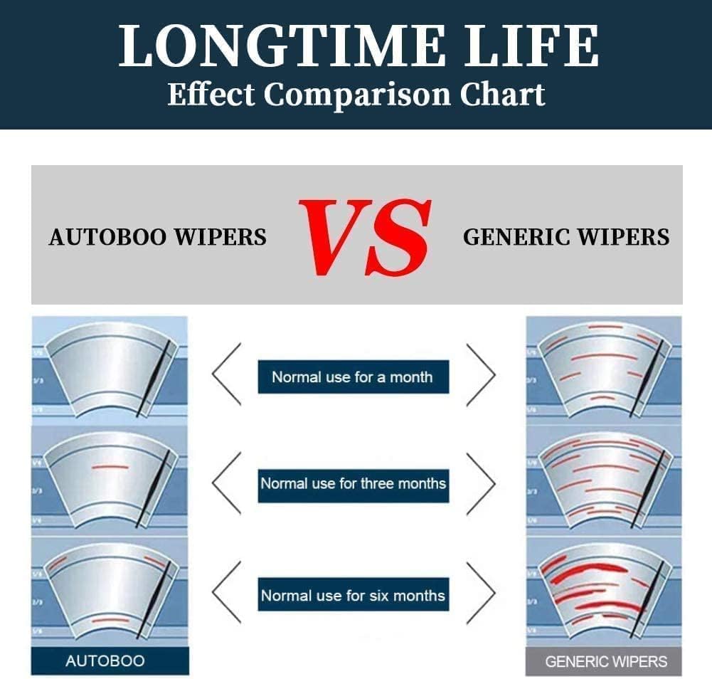 - 【ALL- WEATHER PERFORMANCE】- The patented 1,500 pressure points on the blade deliver the quietest performance. Higher visibility and lower-DB wipe ensure the driving safety.