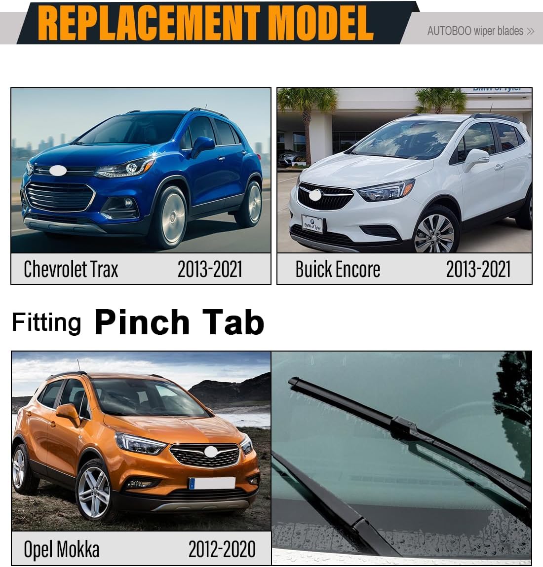 AUTOBOO 26"+14" Windshield Wipers with 10" Rear Wiper Blades Replacement for Chevrolet Trax 2013-2021 2022 2023,Buick Encore 2013-2022,Opel Mokka 2012-2020 -Original Factory Quality (Pack of 3)