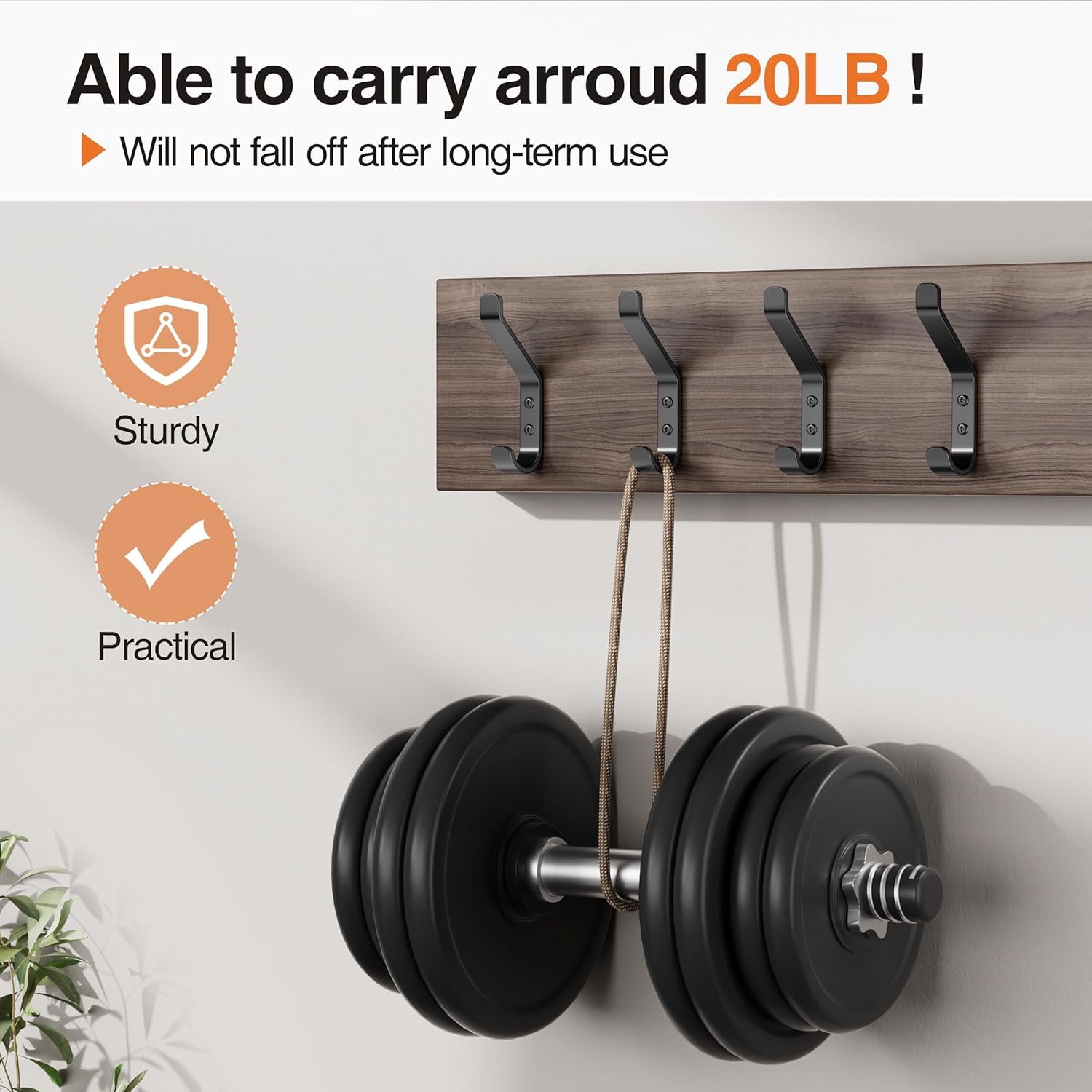 - 【Hold up to 20LB】Due to a precise mechanical design, the heavy duty hook can hold up to 20LB without falling.