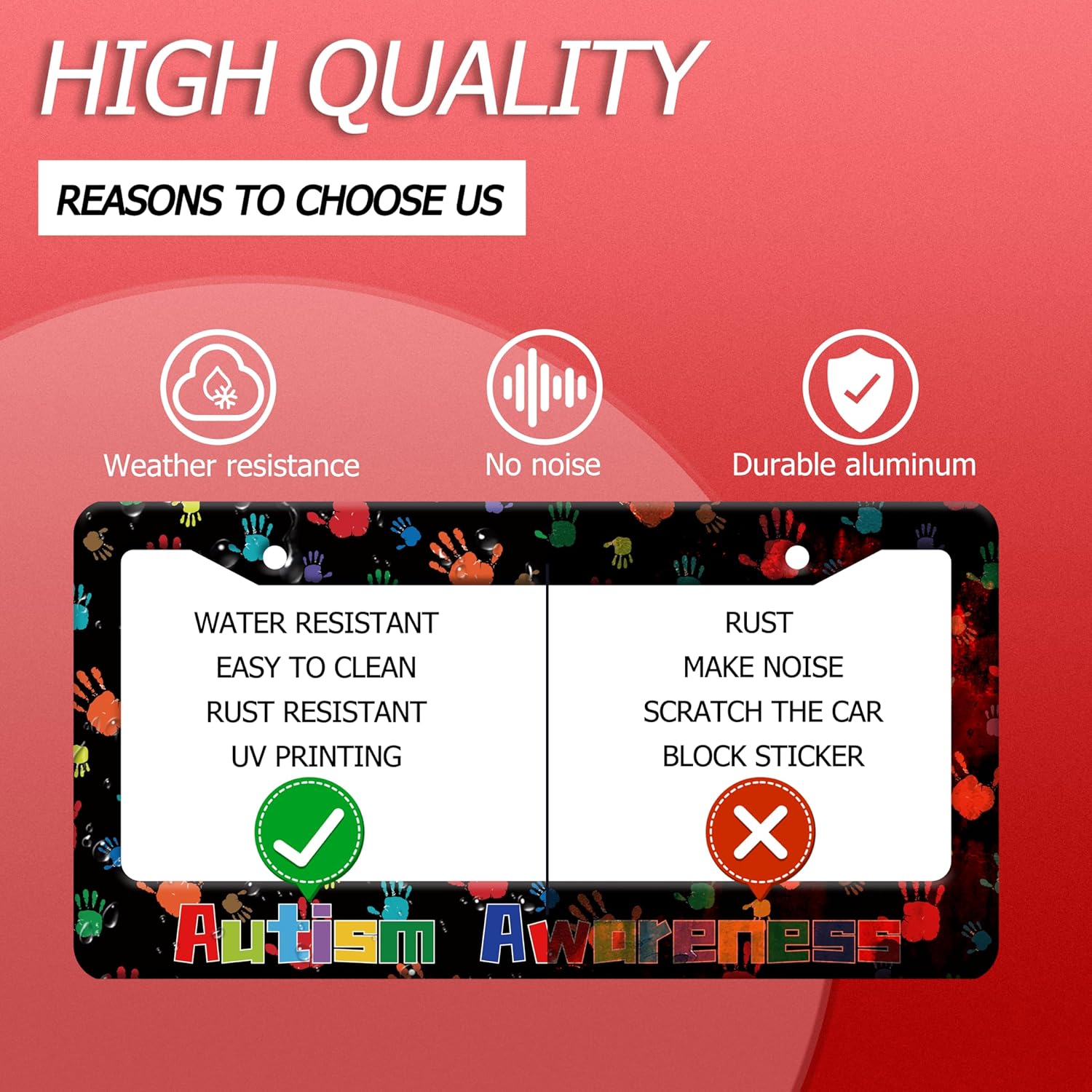 Autism Awareness License Plate Frame Colorful Handprint License Plate Frames Stainless Steel Accessories Cars Decor with 2 Holes and Screws Fits Standard US CA Vehicles Size 12.2 x 6 Inches