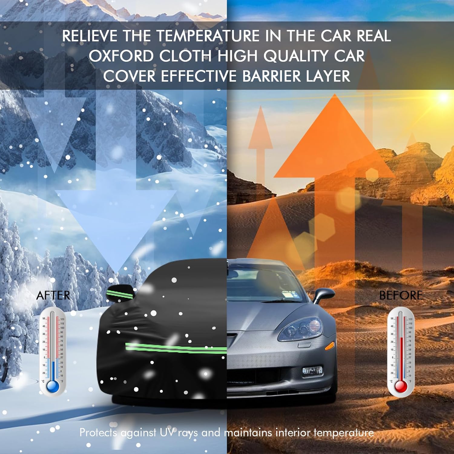- 🚘【Premium Material】The car cover for Corvette C6 is made of heavy-duty 210D Oxford cloth and waterproof silver-plated fabric, and has multi-layer Cotton coating, which can be windproof, dustproof, UV-proof, sun-proof, not easy to tear, and withstand water pressure up to 1600mm. The inner layer also has a thickened cotton backing, which not only fully prevents the paint from being scratched, but also has thermal insulation, which is warm in winter and cool in summer.