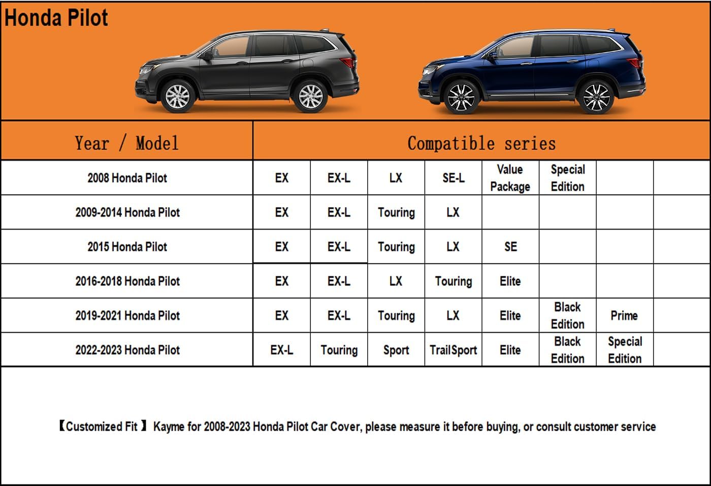 - 【Suitable for】— Custom fit for Honda Pilot (2008-2025) . Come with a large enough portable bag to store your cover when you do not use