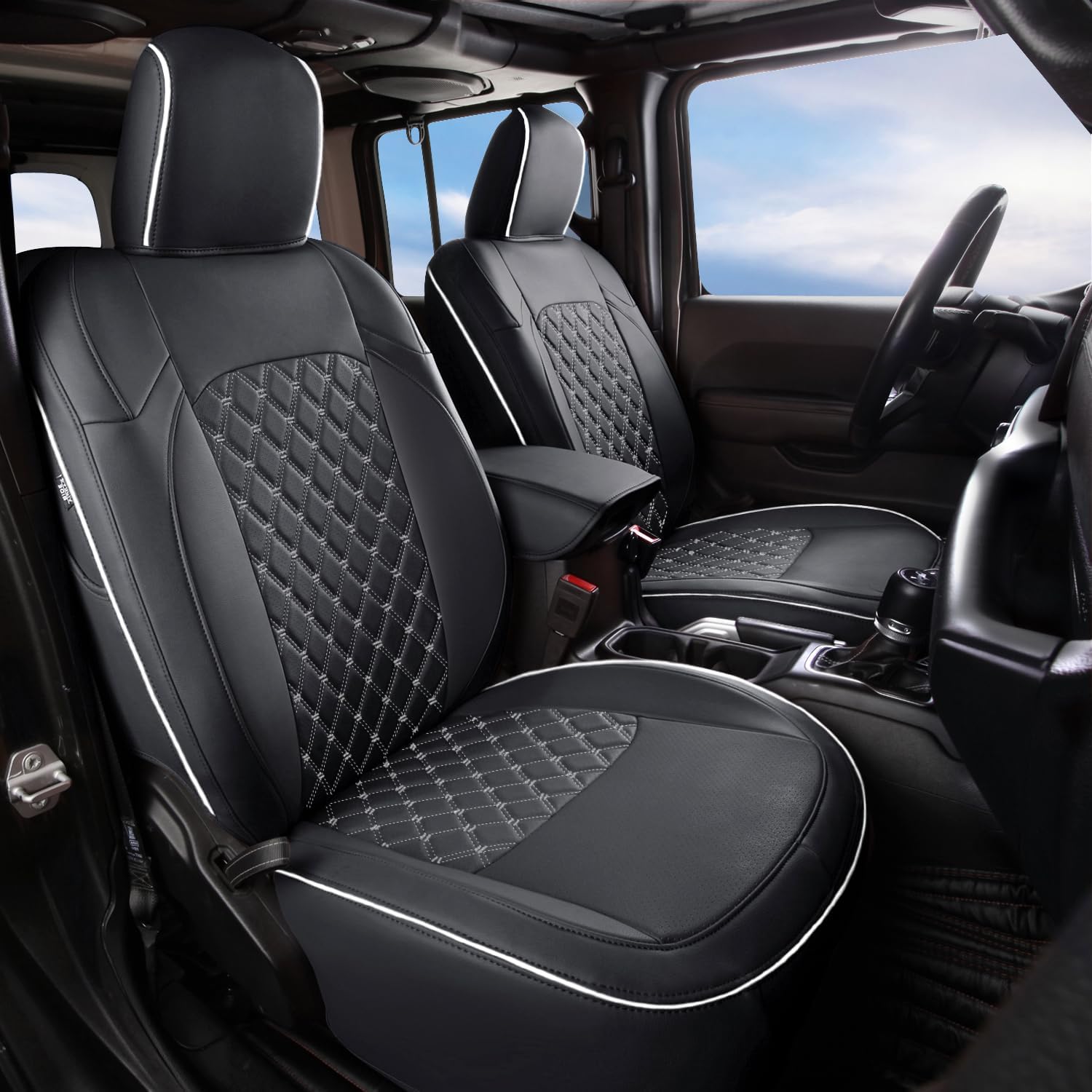 - 【CUSTOM FIT】 - A full set of seat covers customized according to the original car seat size 1:1, which will fit Wrangler JL 4 Door 2018 2019 2020 2021 2022 2023 2024 2025 (without Rear Cup Holder) like a glove.