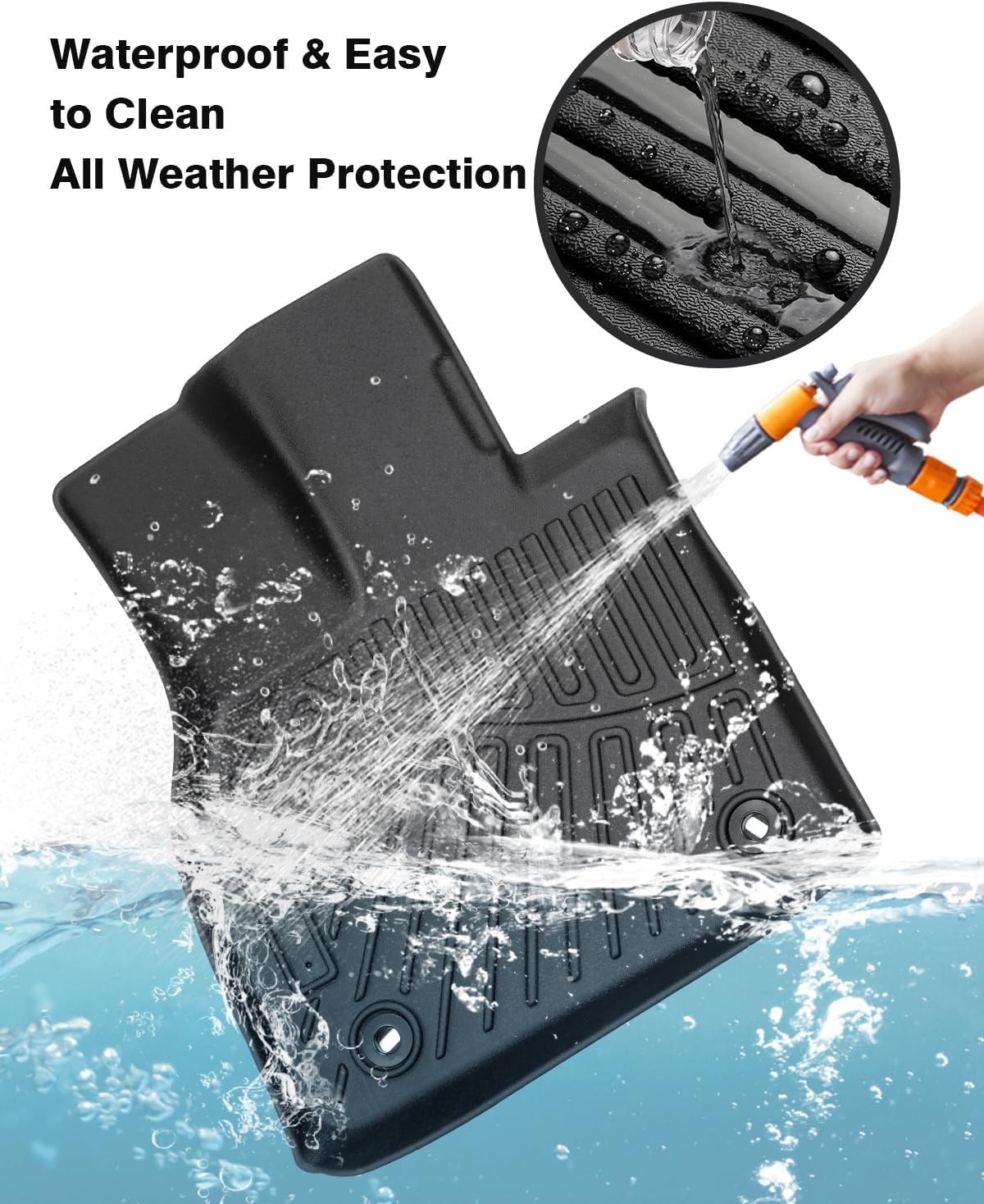 - All Weather Floor Mats: The floor mats are high-temperature sunscreen without odor, and low-temperature freezing does not harden. No matter whether your car is in the skating rink or sunny beach, in the rain, or driving in the dust, you can enjoy the long service life and stable strength of our foot mats.