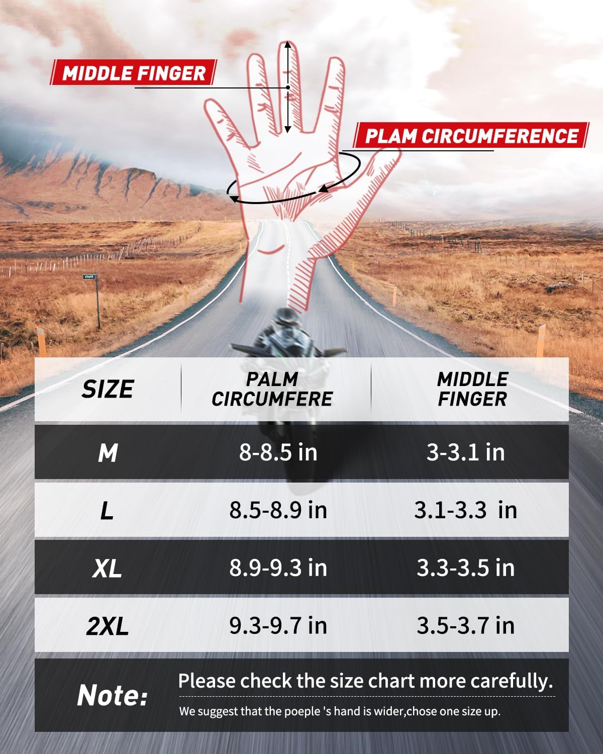 - 【Touch Screen Design】: Men's motorcycle riding gloves are design with touch screen function on the index finger,thumb,and middle finger tips. the gloves work with all touch screen devices in alll weather without taking off the glove.
