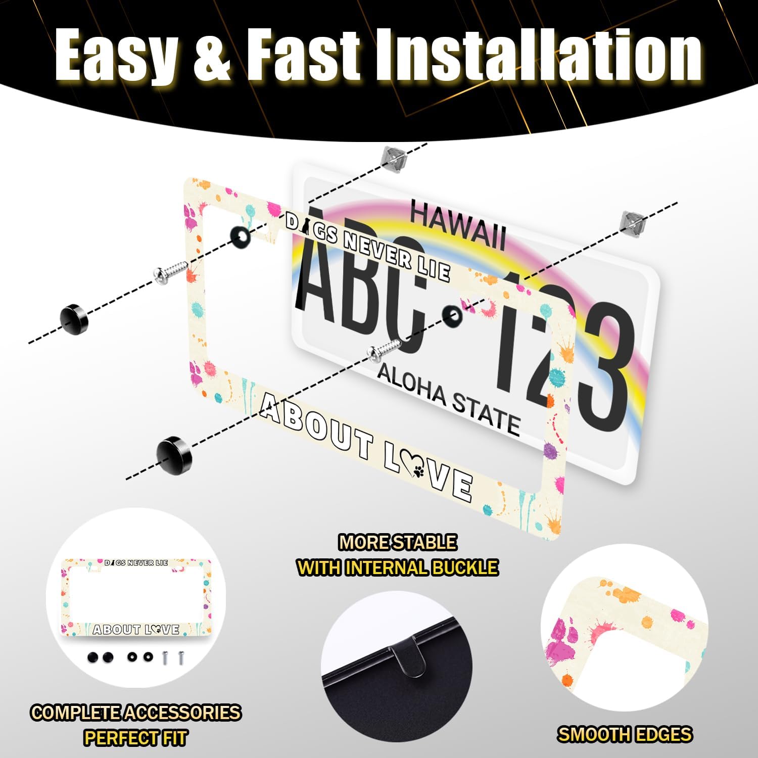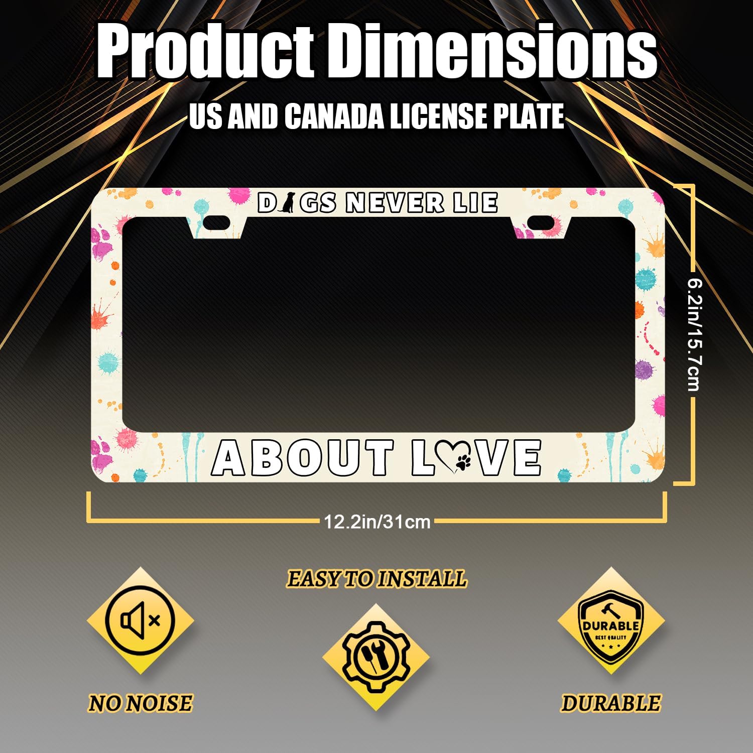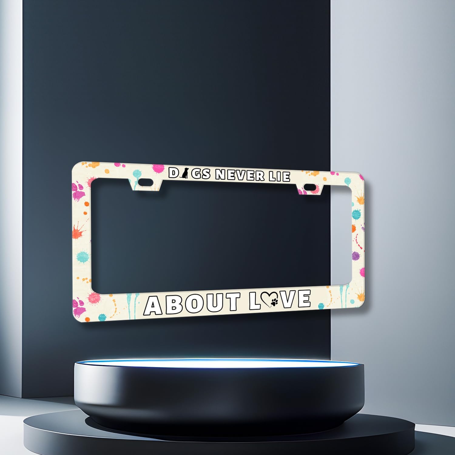 Dog License Plate Frame Dogs Never Lie About Love License Plate Stainless Steel Colorful Animal Car Accessory Funny License Plate Decoration Men Women Size 12.2" x 6.2" with Screws