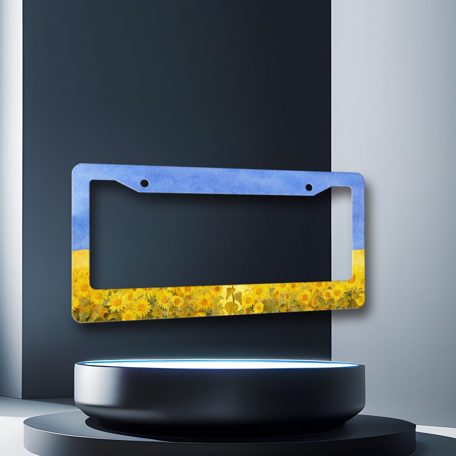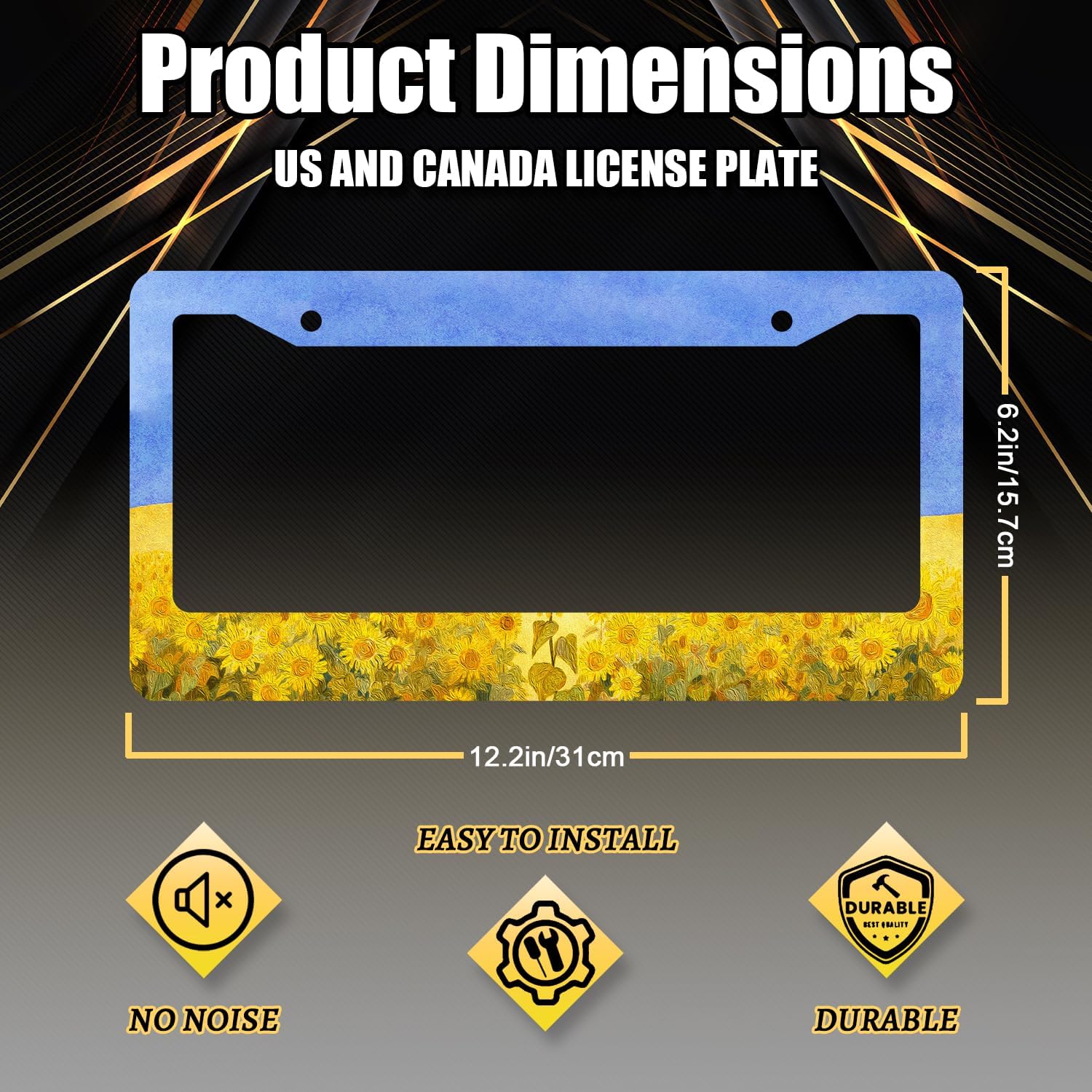 Sunflowers License Plate Frame Watercolor Yellow Floral License Plate Holder Colorful Stainless Steel Flowers Car Accessory Funny License Plate Decoration Size 12.2"x 6.2" with Screws