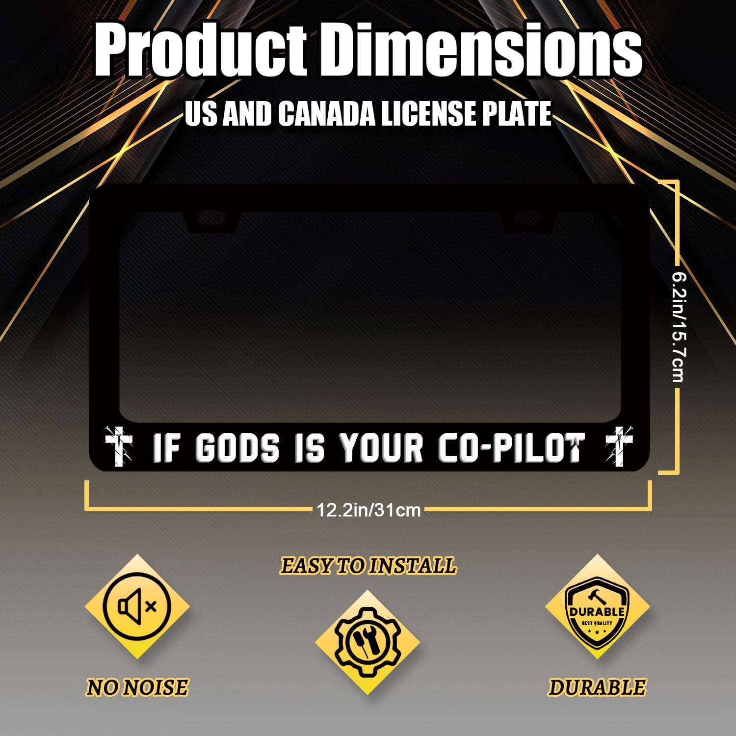 If Gods is Your Co-Pilot License Plate Frame Funny Jesus License Plate Stainless Steel Christian Car Accessory Religion License Plate Decoration Men Women Size 12.2" x6.2" with Screws